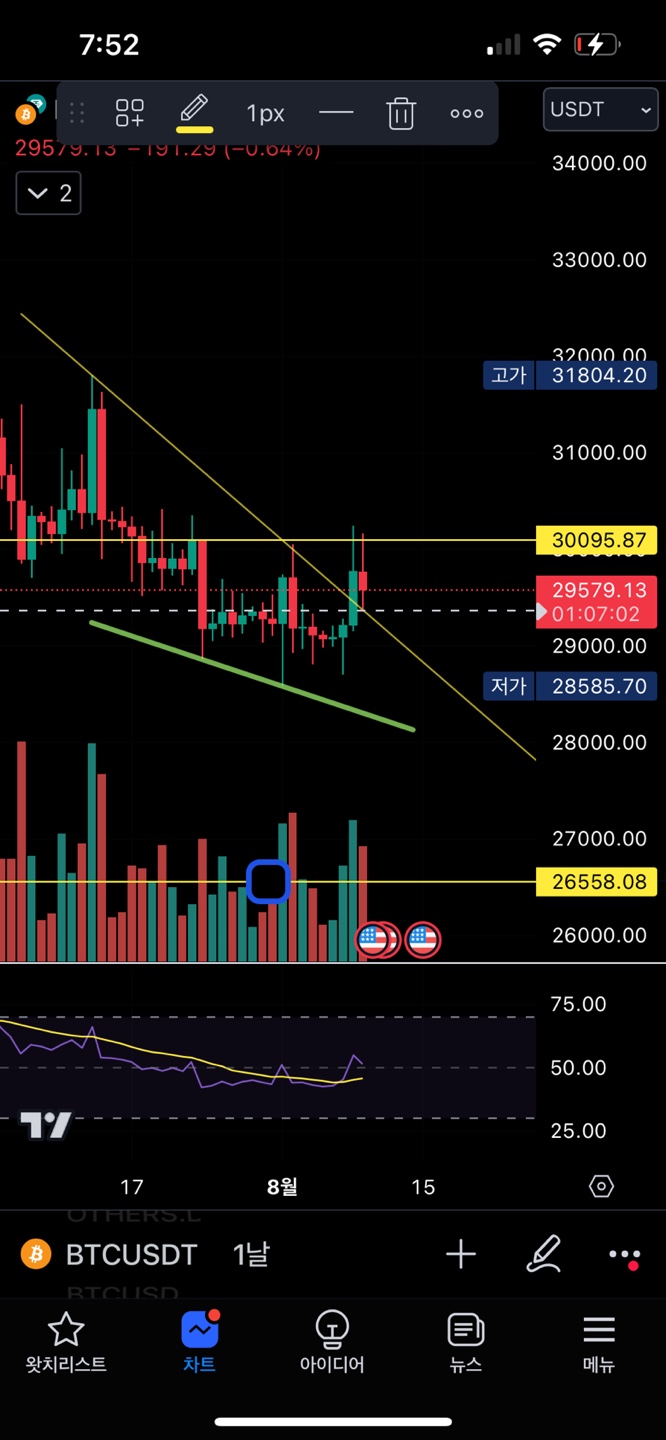 일봉 마감을 29.8 29.9 위에서만 했어도 좋았으나
