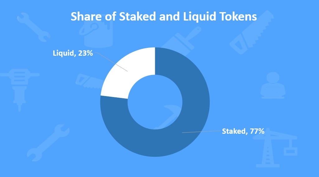 Out of the current supply 324k tokens, around 250k are staked, and 74k are liquid at the end of November.