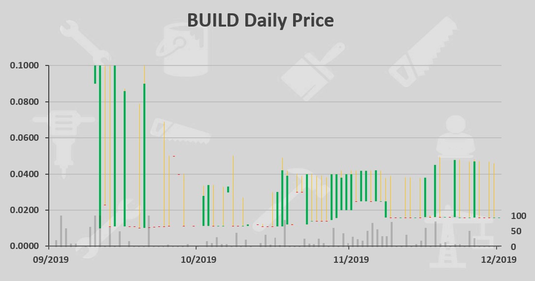 Here is the price chart for the BUILD token with daily candles.
