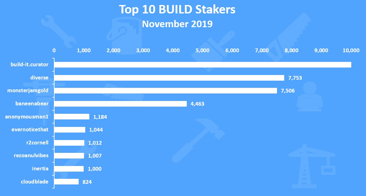 Here is the chart of the Top 10 BUILD earners in the period.