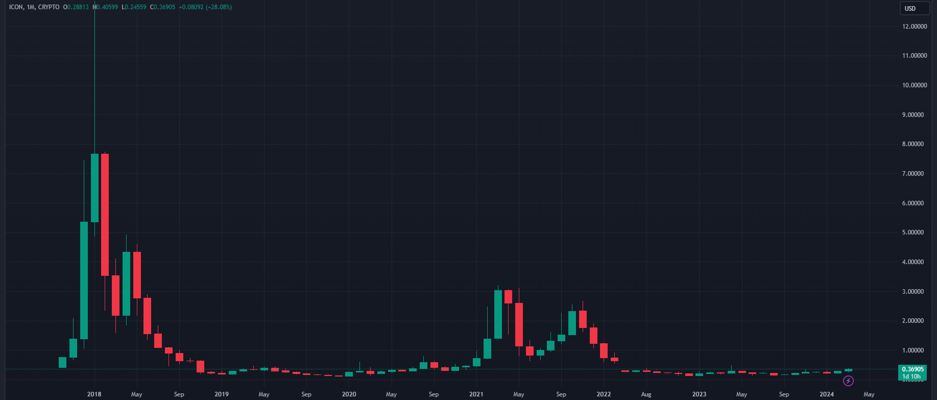 ICON (ICX) primarily serves as the native currency of the ICON blockchain. ICON Crossing provides a blockchain framework to simplify development. It was launched in 2018 and has successfully navigated two bear markets.