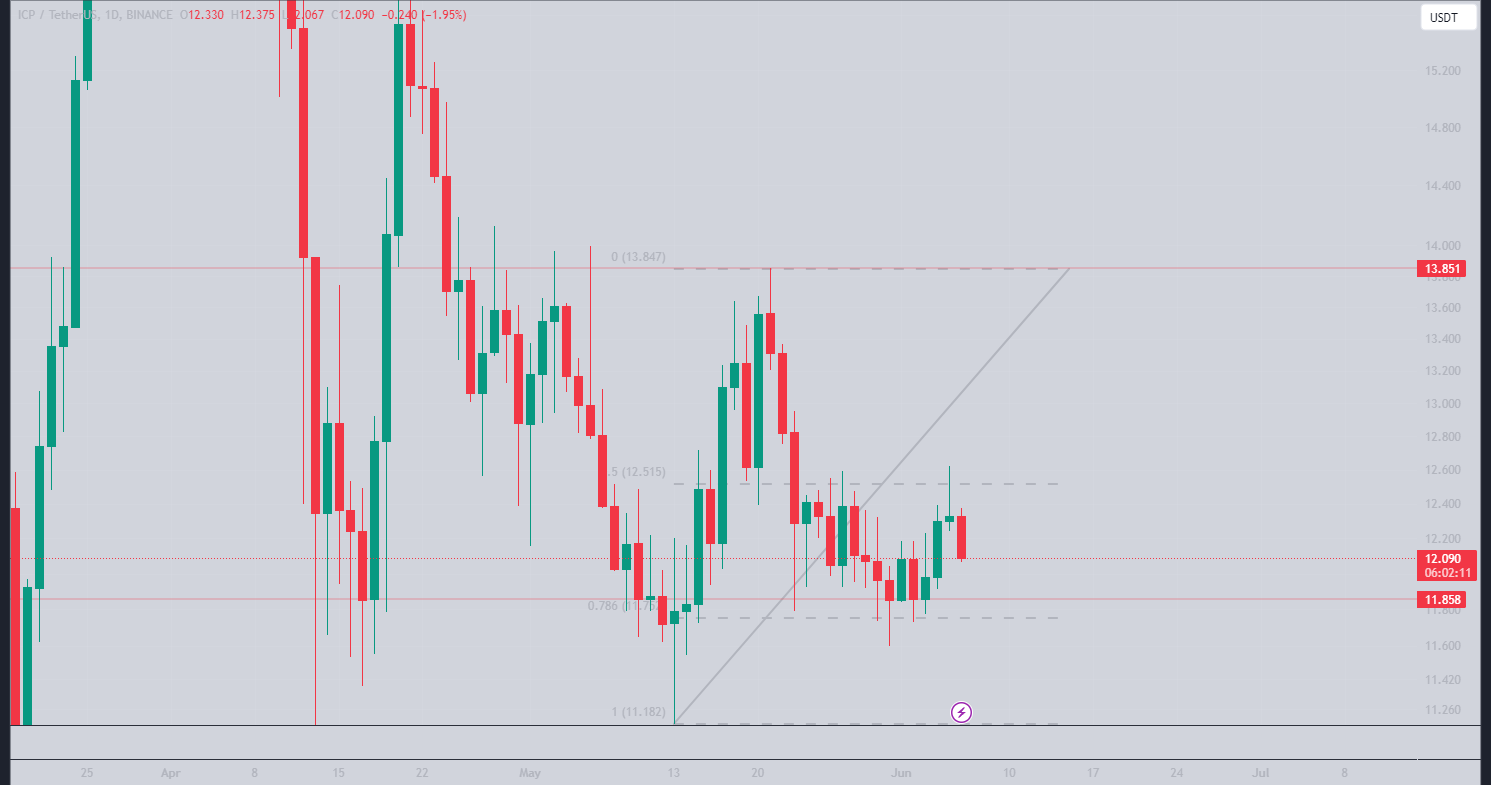 ICP is currently trading at $12.09 with a 24-hour trading volume of $54 million, experiencing a decrease of 20% compared to the previous day.