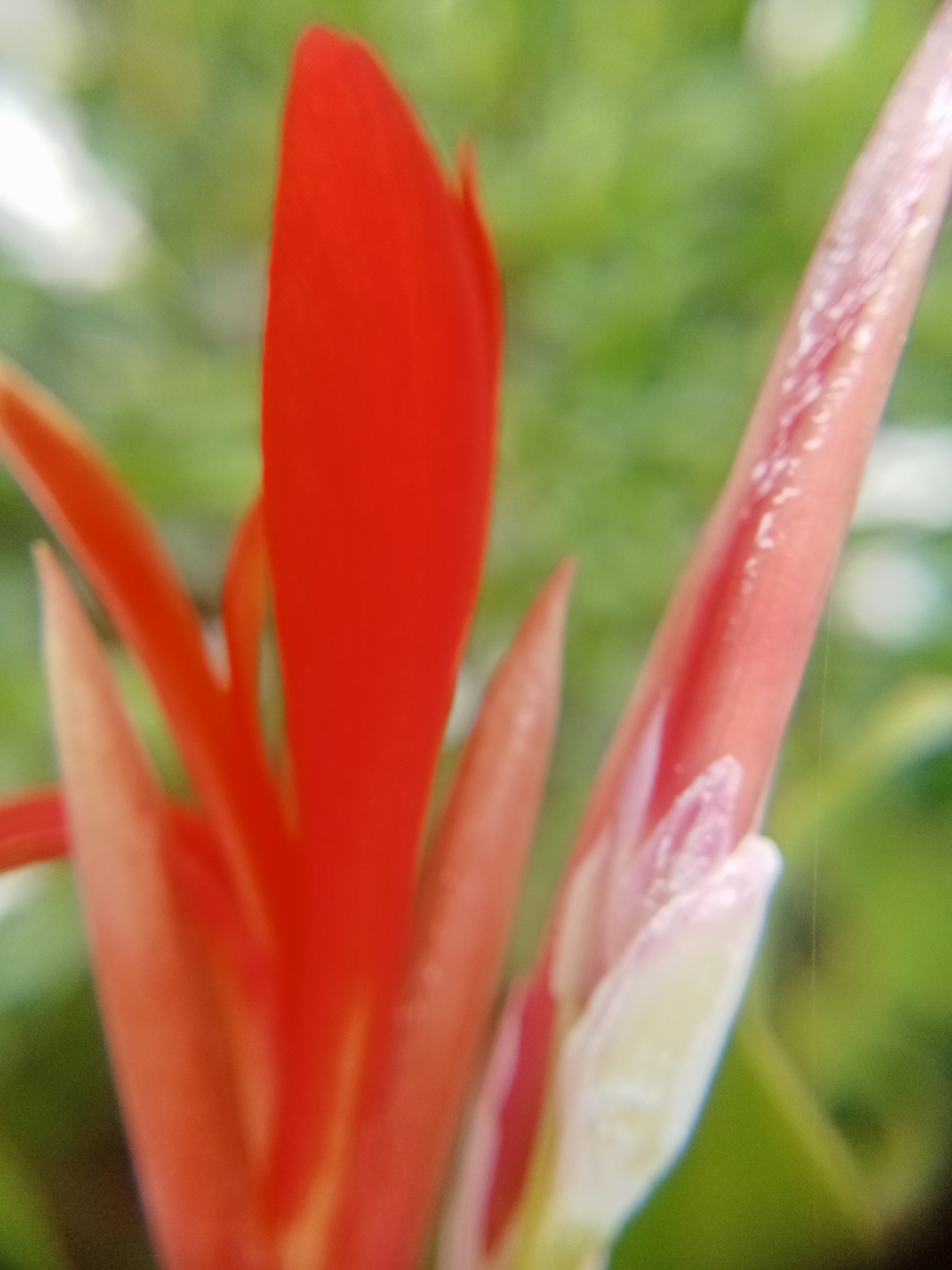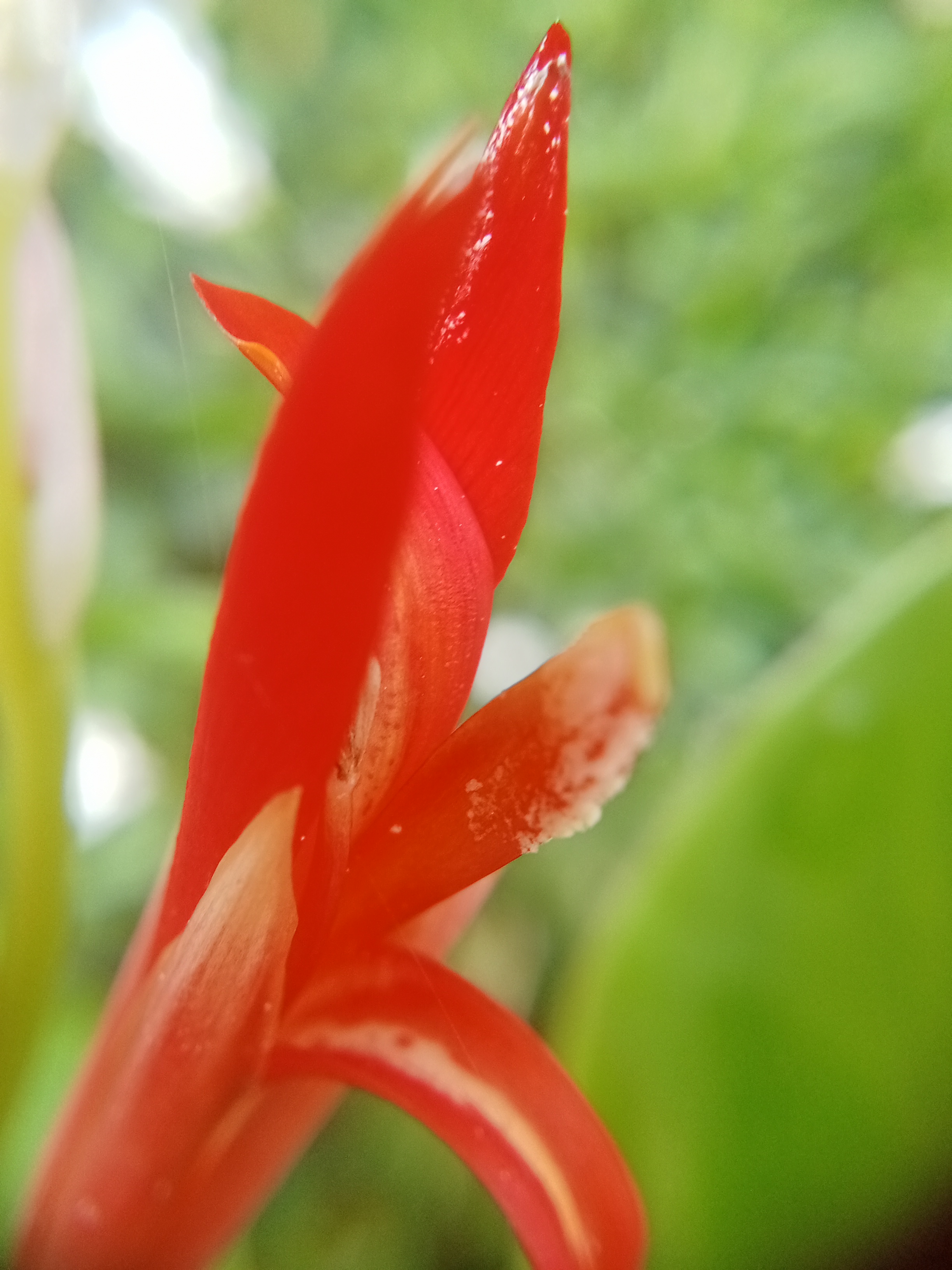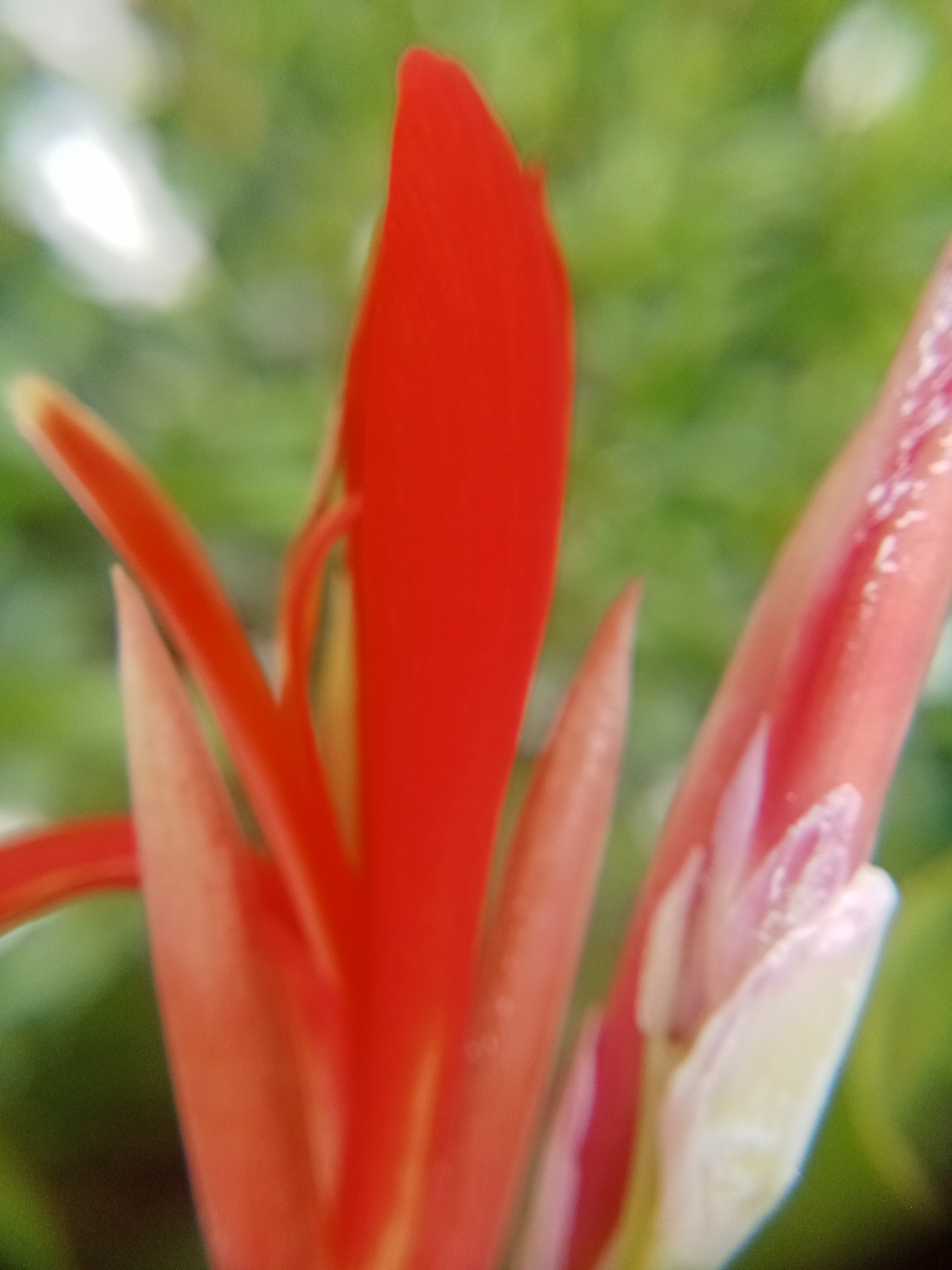 Bunga merah ini memiliki bentuk bunga yang runcing dan panjang.