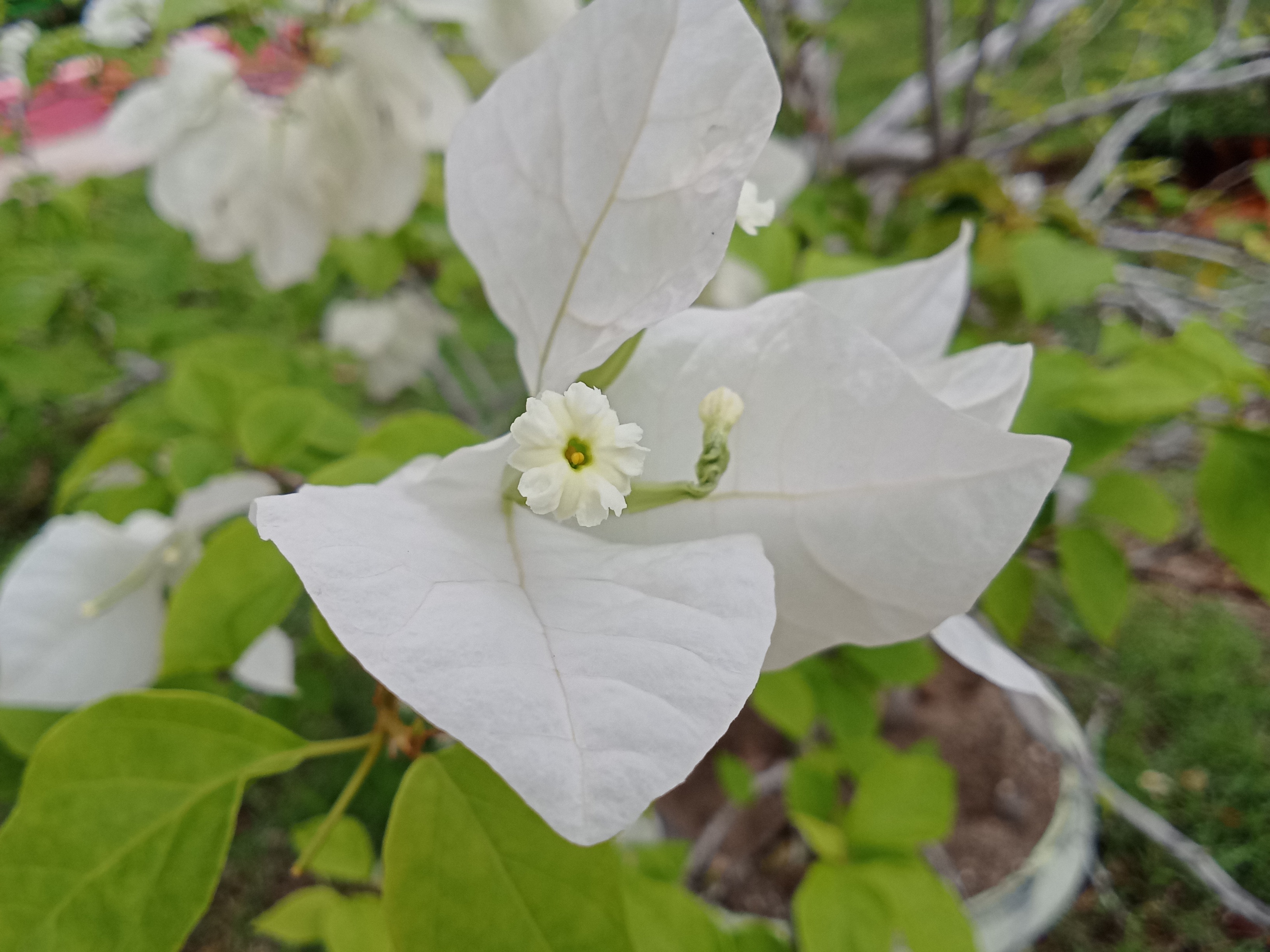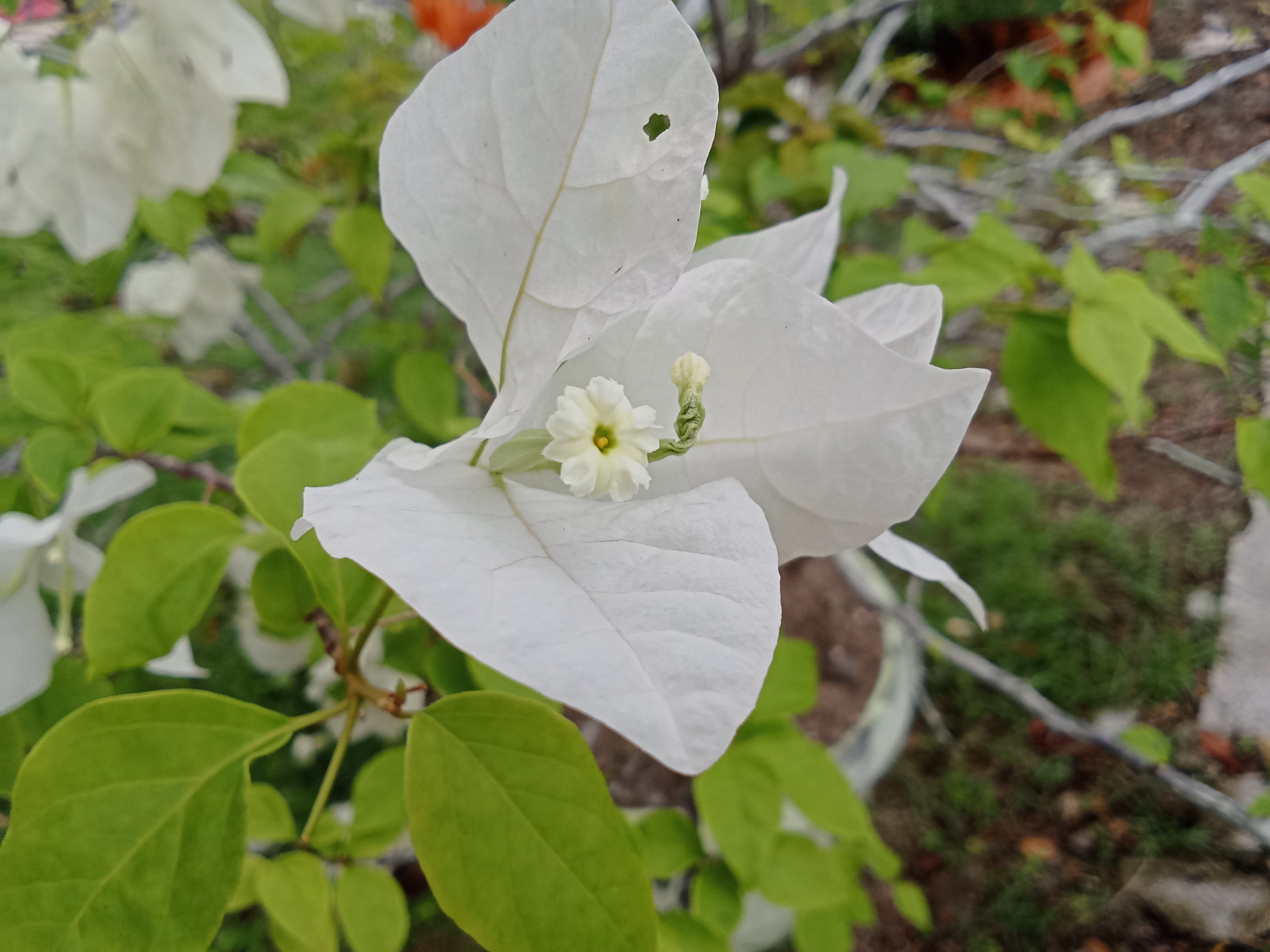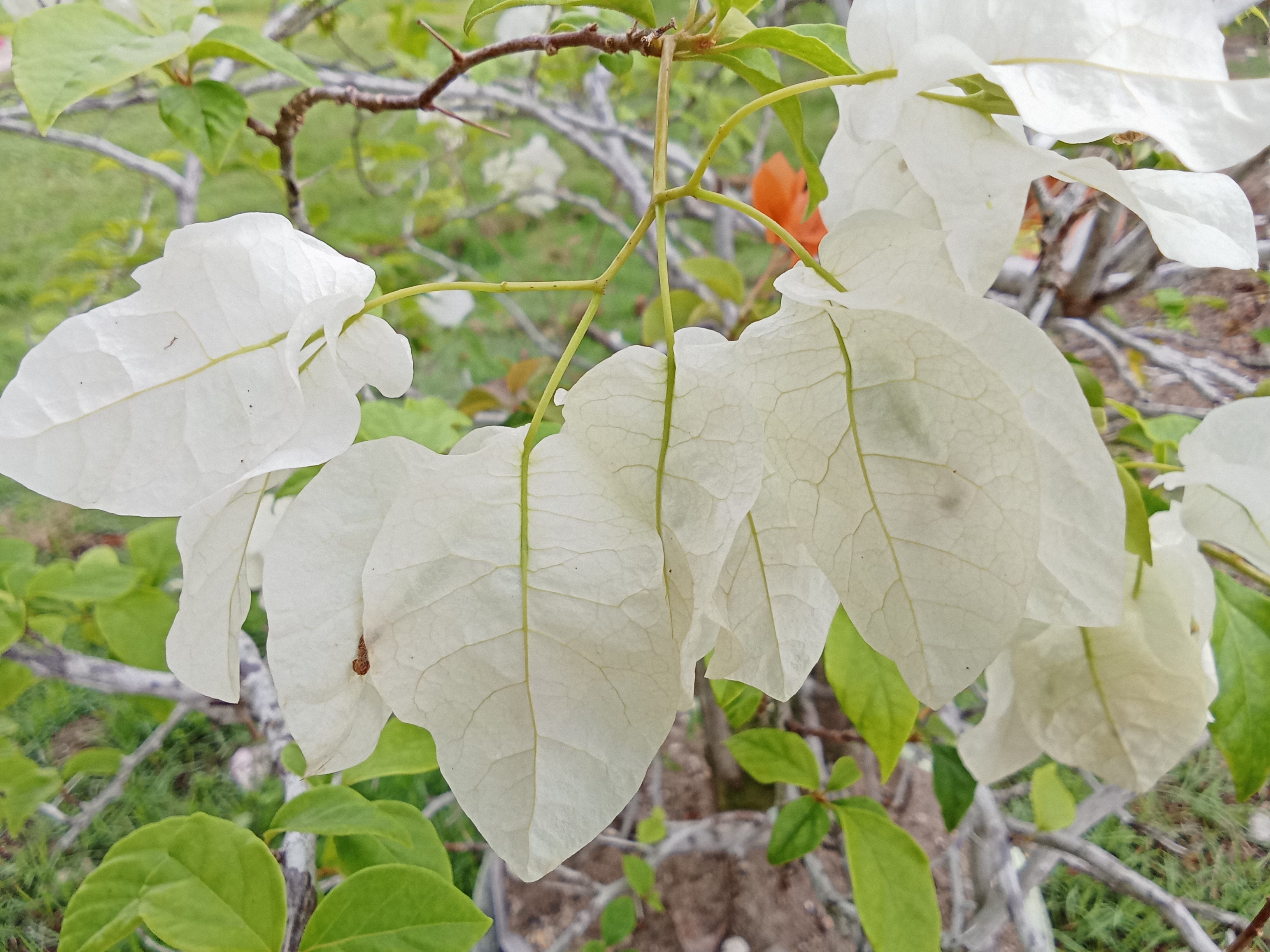 Pesona bunga Bougenville seolah olah tidak pernah habisnya. Kali ini saya berbicara mengenai bunga Bougenville warna putih yang sedang mekar di dahannya.