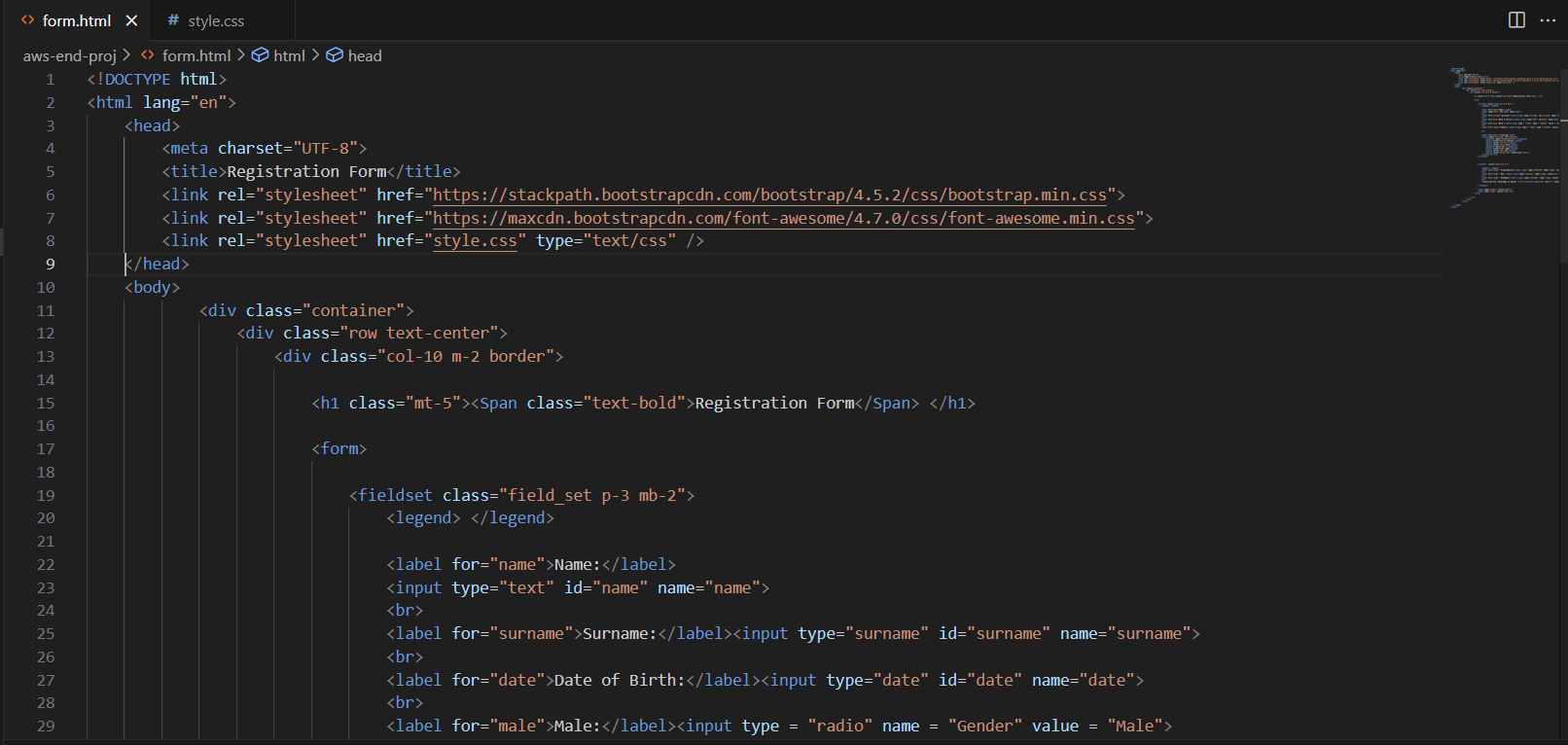 Open VSCode and create two files named form.html.