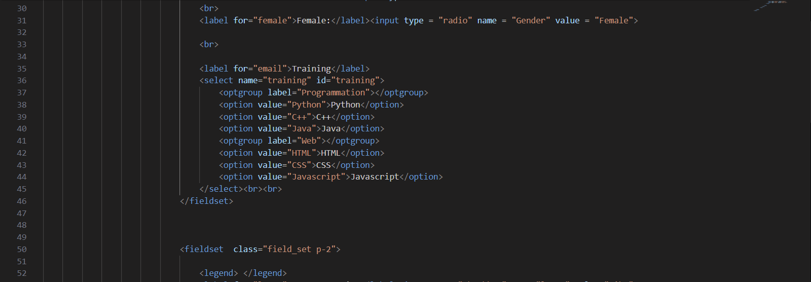 <fieldset> helps to group related elements of a form. For example, the < fieldset > tag can be used to put more than one < input > in a single section.