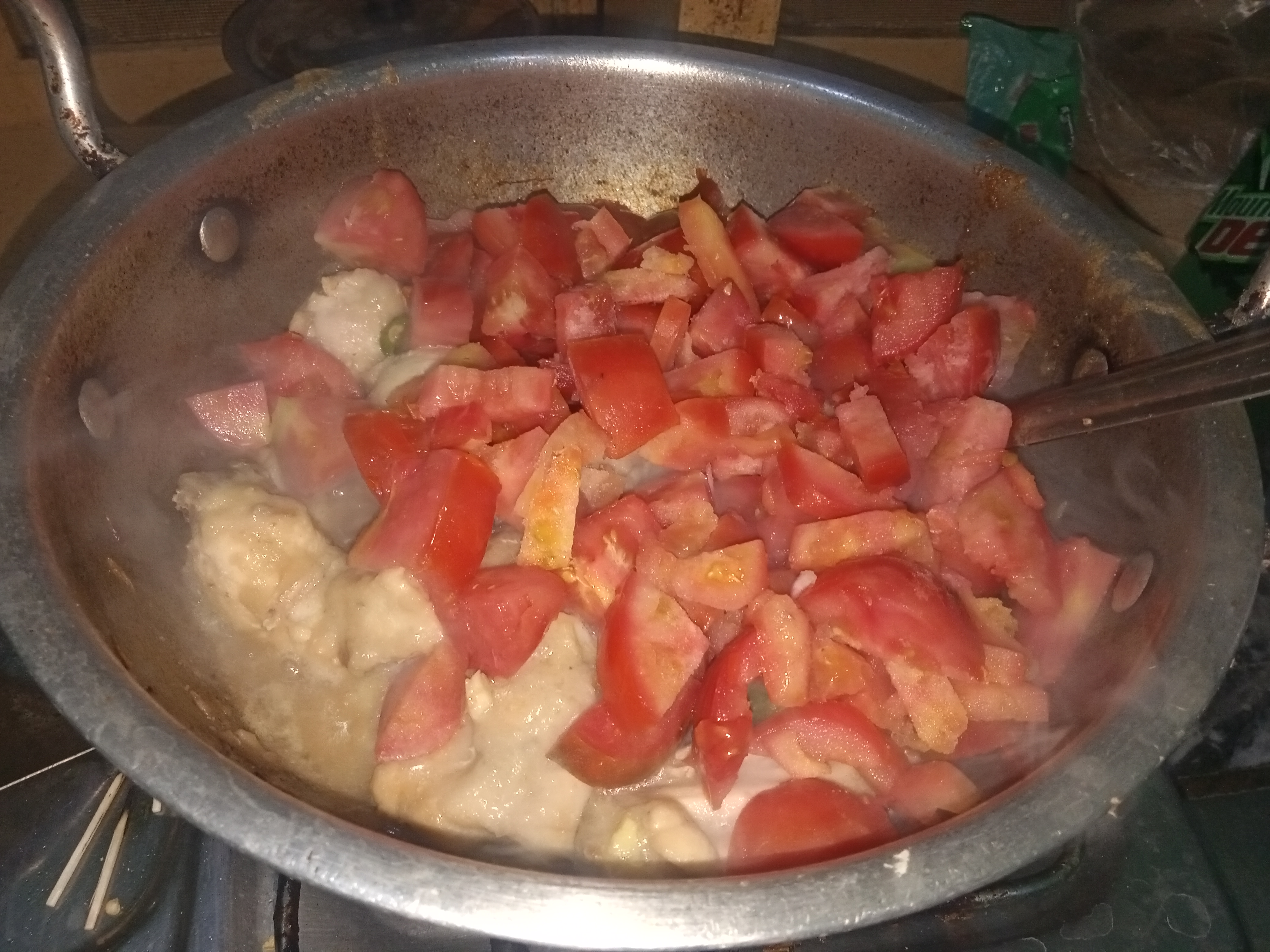 Add tomato slices or paste of tomatoes in chicken