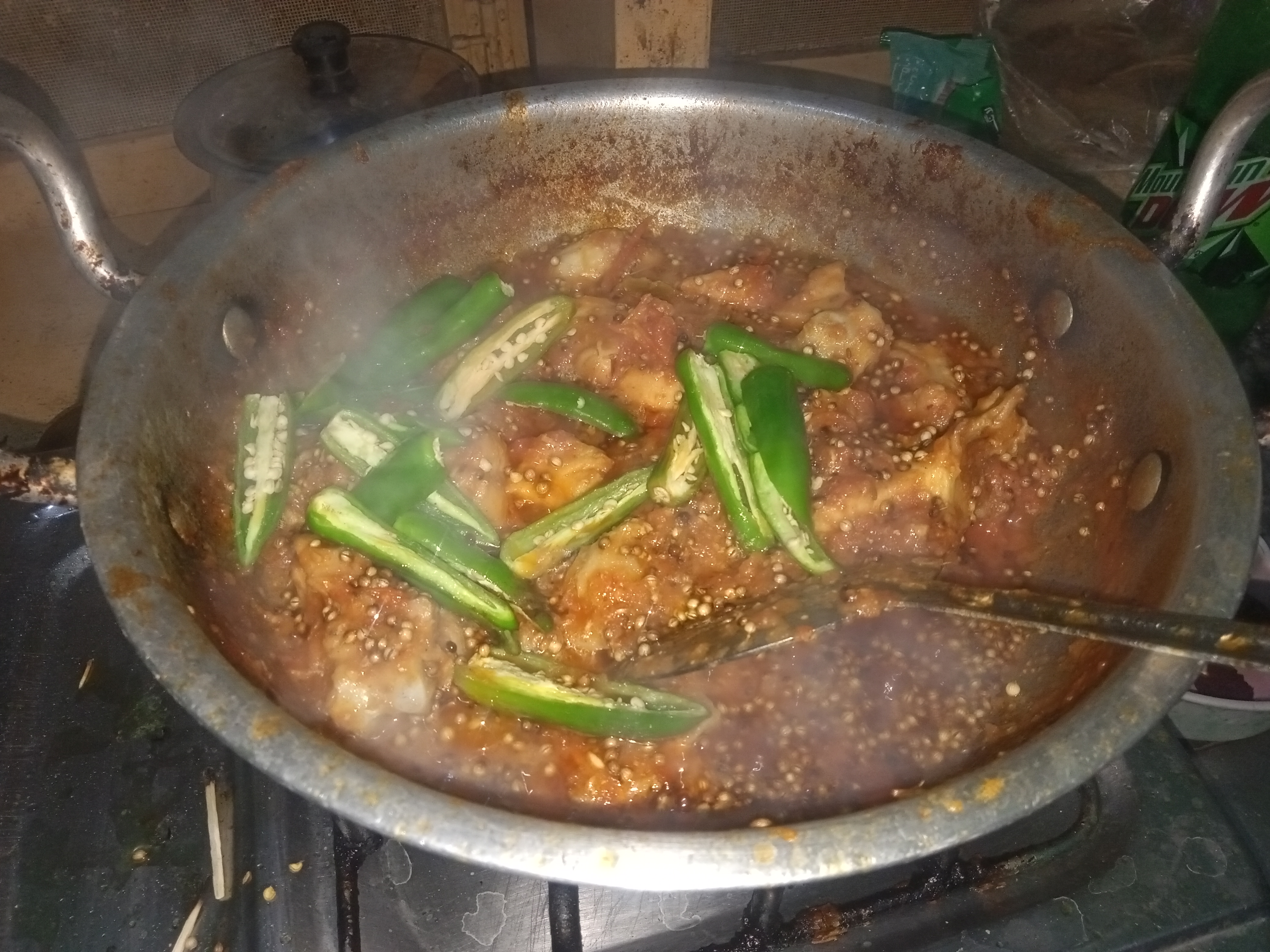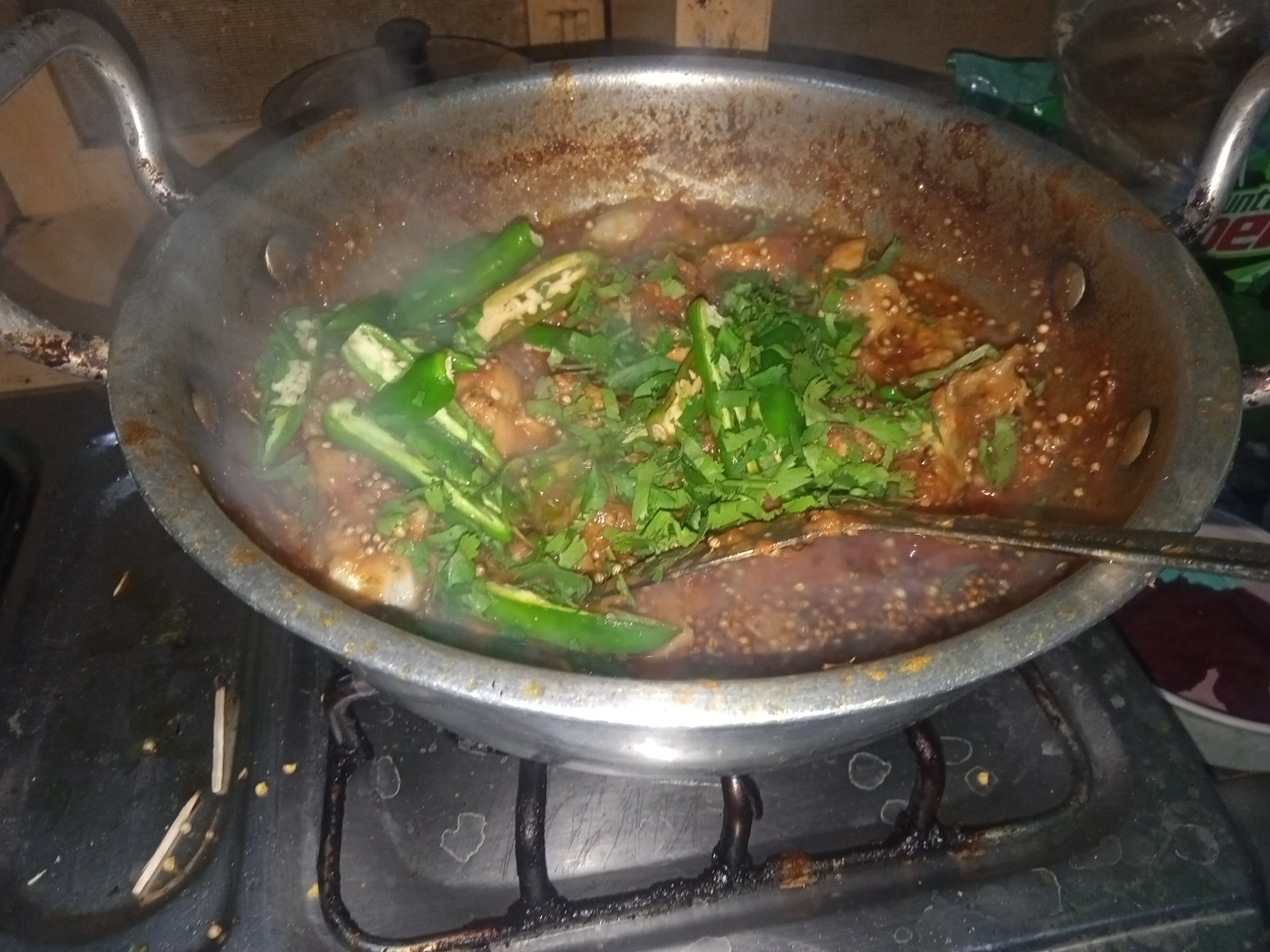 Add coriander seeds and Jullian cut green chillies in karahi at end