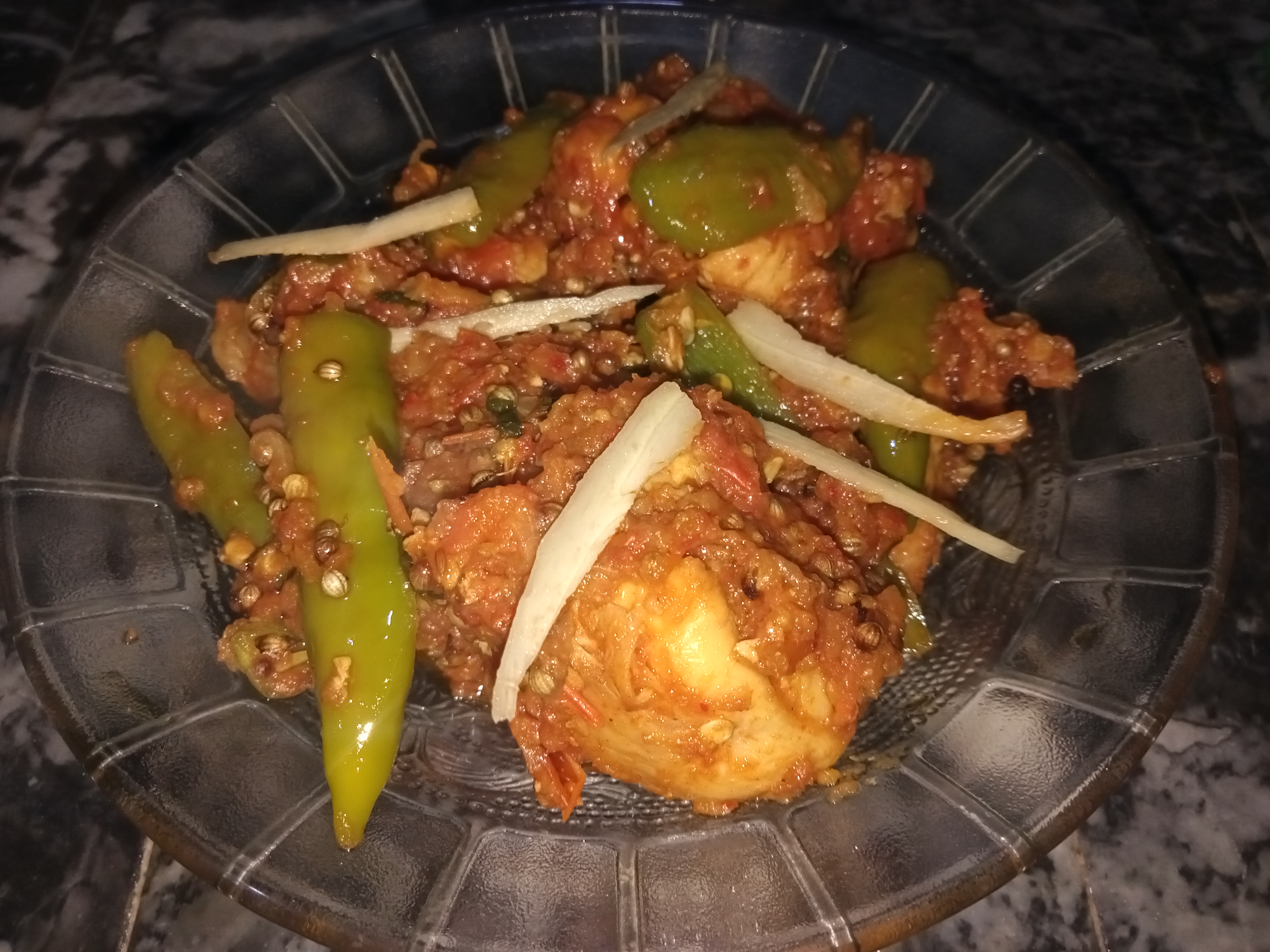 Cut ginger in jullian style for presenting chicken karahi and spread it at top of recipe as I did it below where you can see final look of recipe