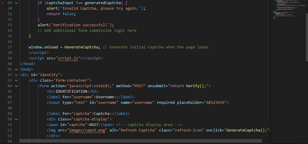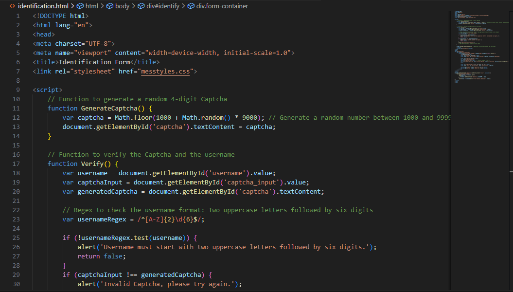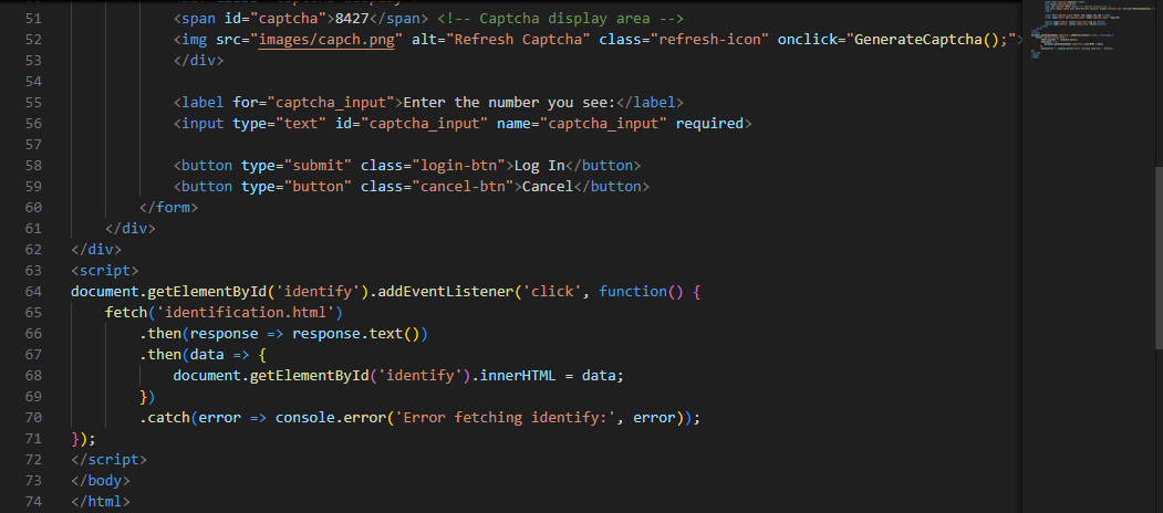 I will be sharing screenshot of various page code and the interface we got from it. This means that I will share with us the code for index.html and the interface it produced, identification.html and so on and so forth. Let's look at the screenshots one after the other below.