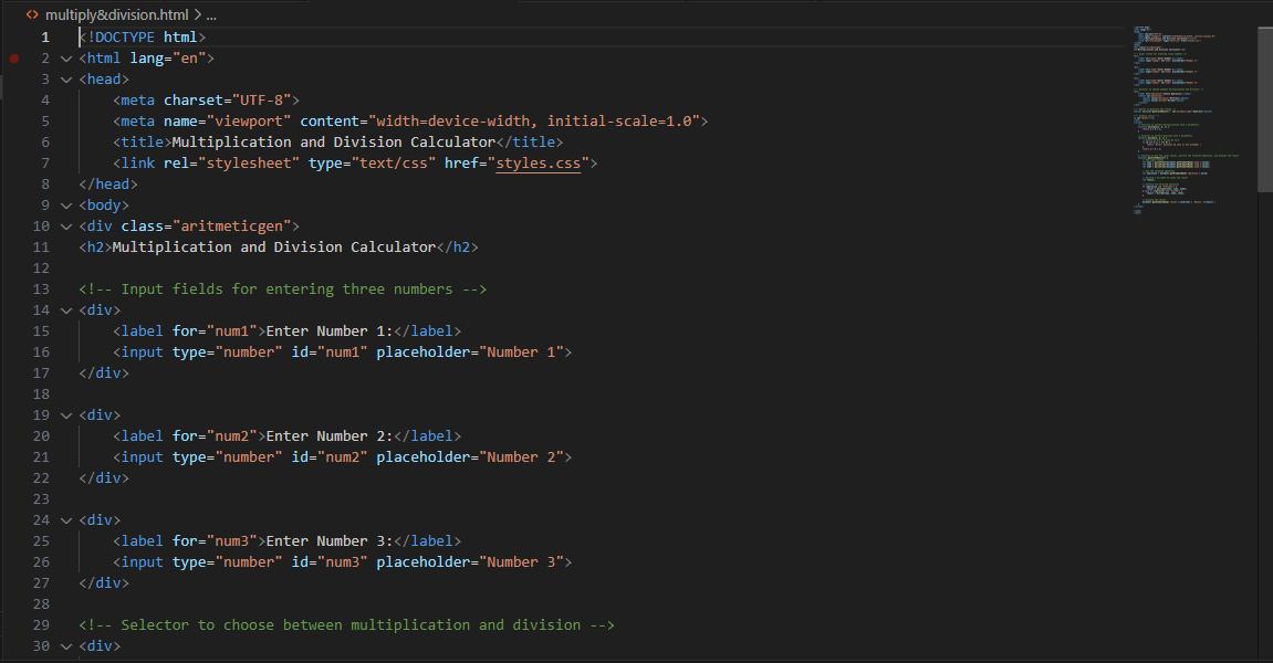 HTML5 code for Multiplication & Division calculation