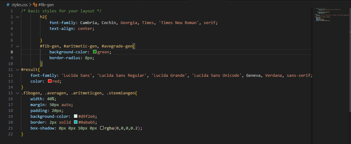CSS code used for all the pages above