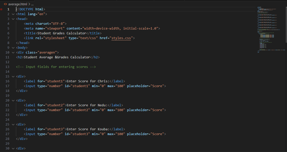 HTML5 code for Average & Grade