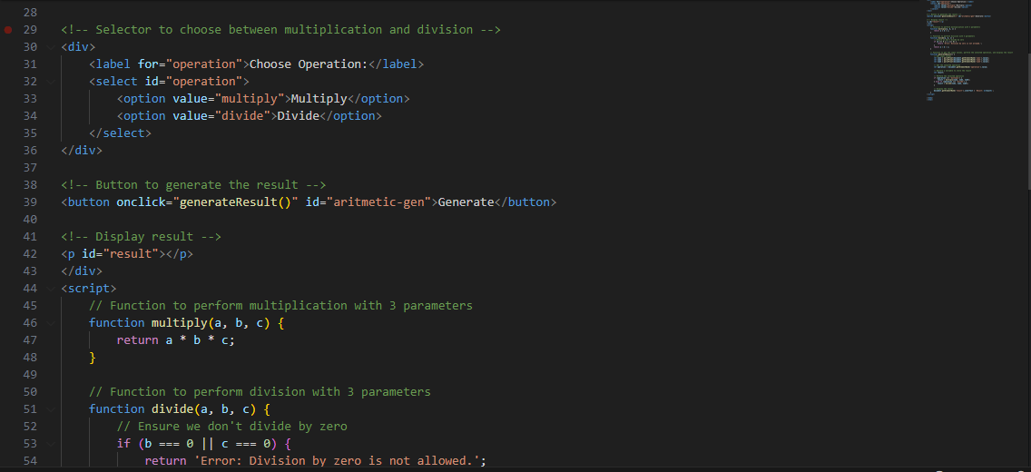 Since we have two operands i.e., multiplication and division, I decided to create a selector that will help me choose which of the operations I want to carry out.