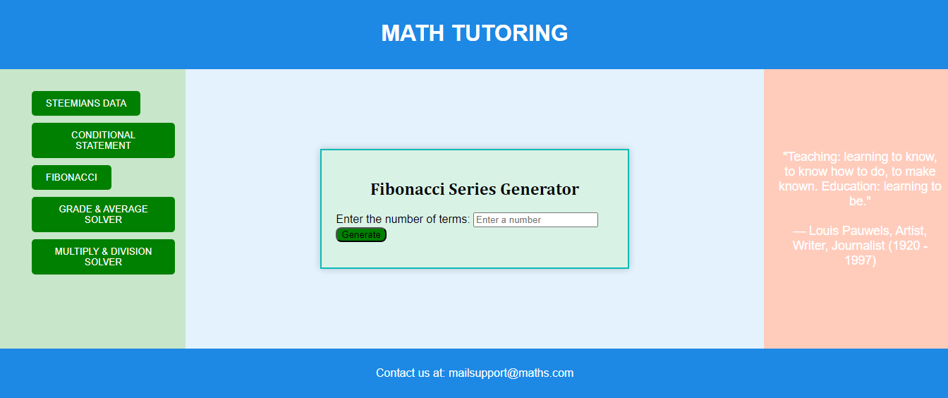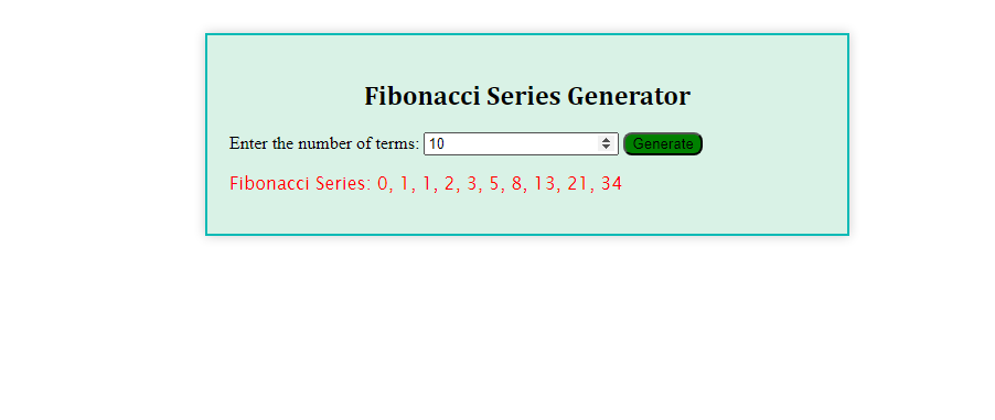 Page Output for Fibonacci Series