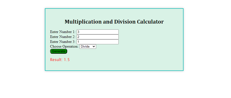 Page Output for Multiply & Divide Calculation