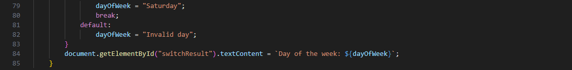 switch statement checks a matching case and then execute the code based on that a good example is the code seen below.