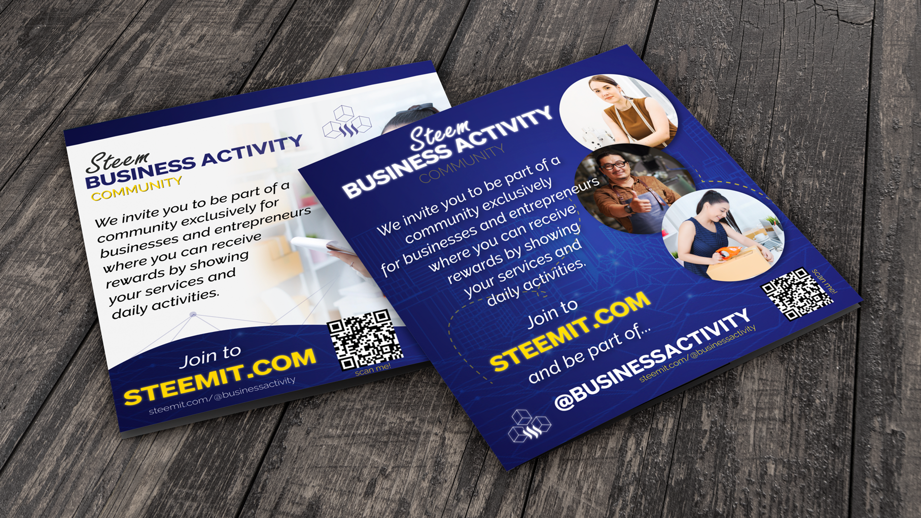 I have designed these flyers in order to bring more business to Steemit and to participate in the Business Activity community. This flyer has a resolution of 1080 x 1080 pixels, perfect for promoting it on social networks such as Facebook, Twitter and Instagram.