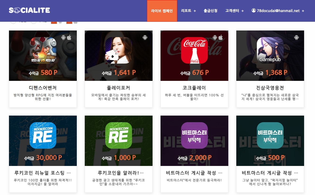 가입후 아래와 같은 캠페인에 참여하여 리워드를 획득할 수 있습니다.