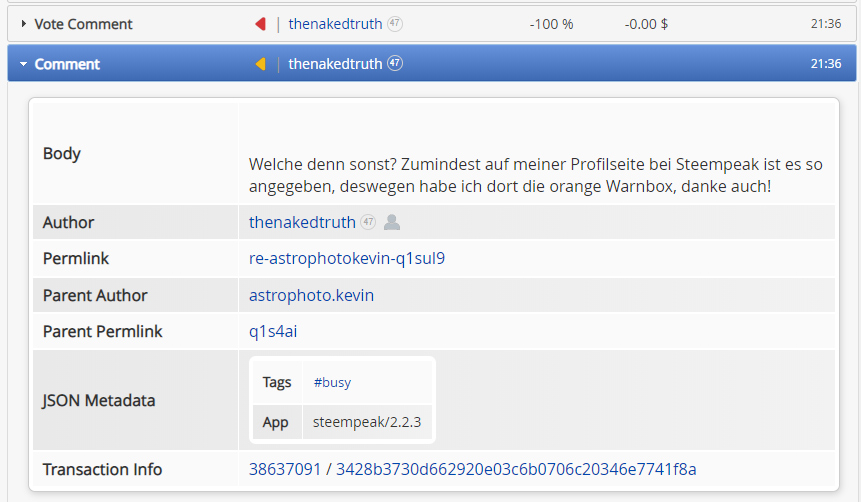 Welche denn sonst? Laut Steempeak-Profilseite ist es diese, daher auch die orange Warnbox dort, danke auch.