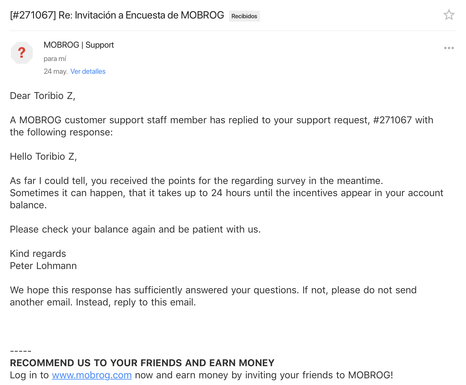Mobrog gracias por reconocer la encuesta que pensé que no me pagarías por un error en la plataforma al momento de pagar la recompensa por la resolución de una encuesta. Les recomiendo porque es una empresa muy seria y lo mejor que paga a paypal. 😎