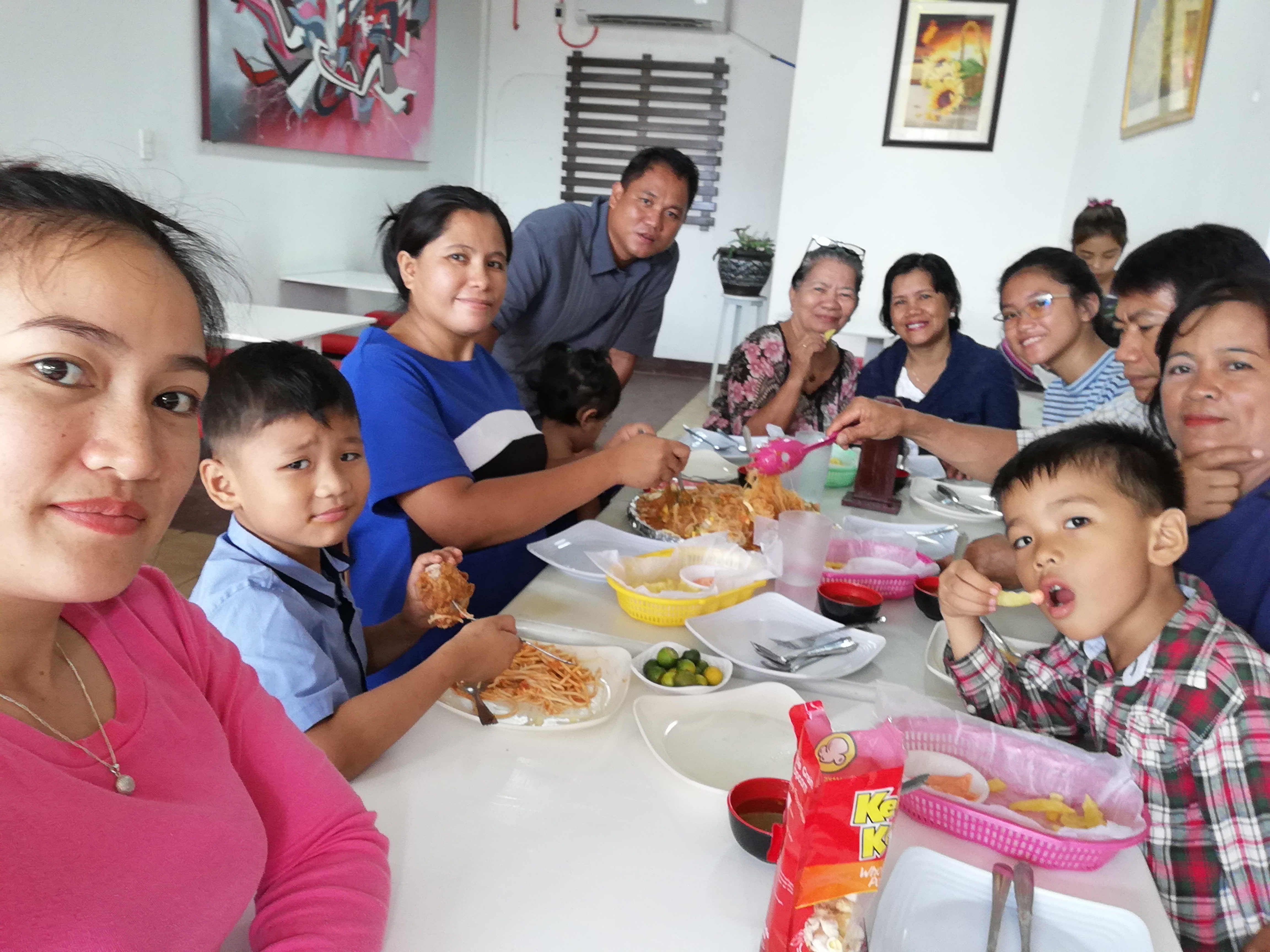 attending wedding anniversary of our beloved fellow christian, so many foods it make us all happy for this nice bonding