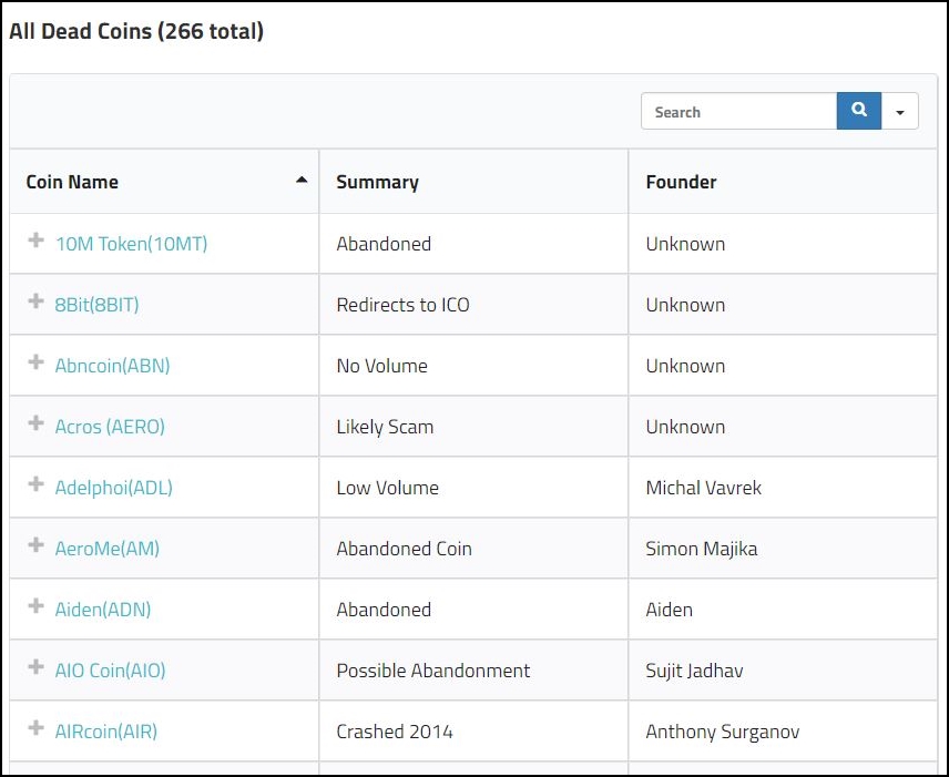 실패한 코인들 찾아보기: Dead coins