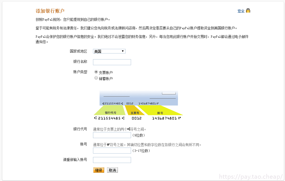 点击继续,完成添加美国银行账户操作。