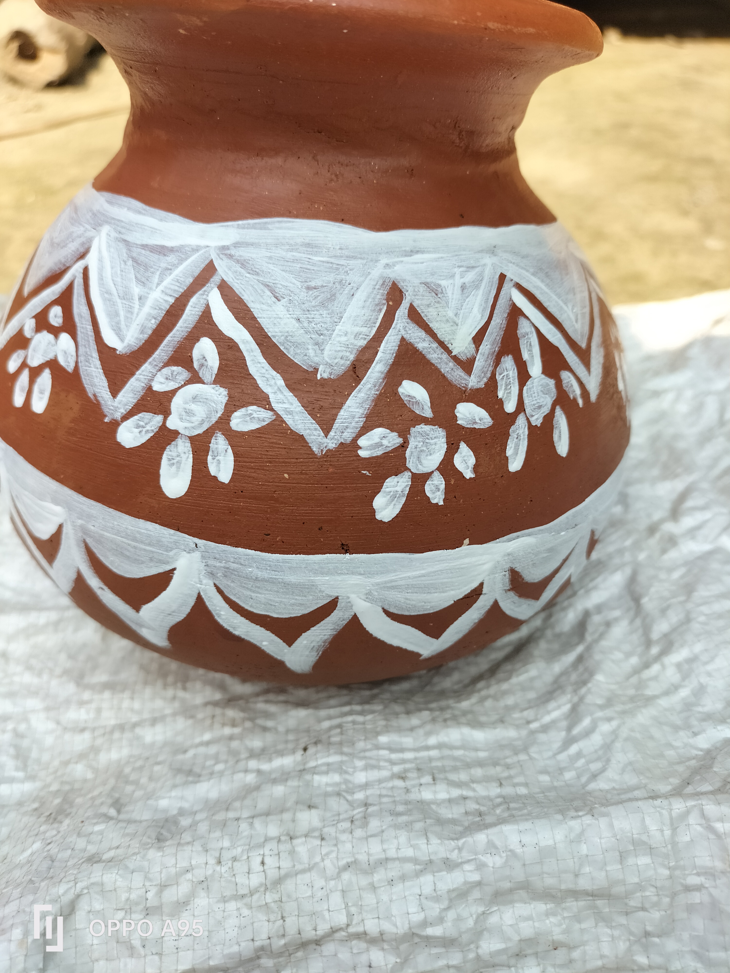 সব কেনাকাটা শেষে মাটির ঘট গুলোতে আলপনা করতে বসে পড়লাম।যেহেতু শীতলা,কালীও মহাদেব পূজা হবে তাই তিনটি ঘটের দরকার। তিনটা ঘটে আলপনা করছি।