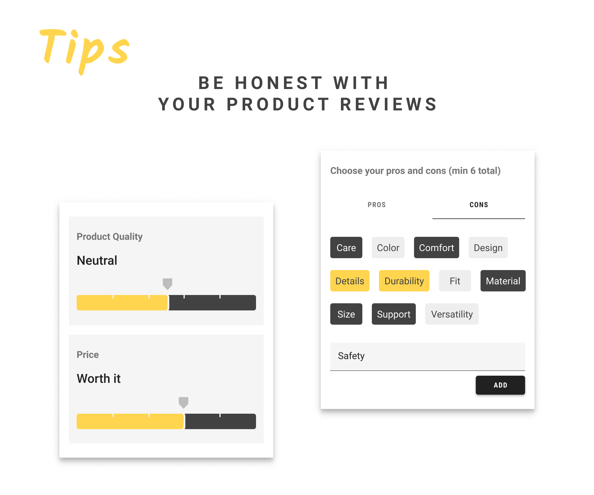 Be honest with your product reviews. We know all products are not perfect so don’t feel like you have to give the best score or have to only list the “Pros” of a product. The “Cons” of a product are as helpful as the “Pros”. Giving an honest review will allow our community members to find the best product for them.