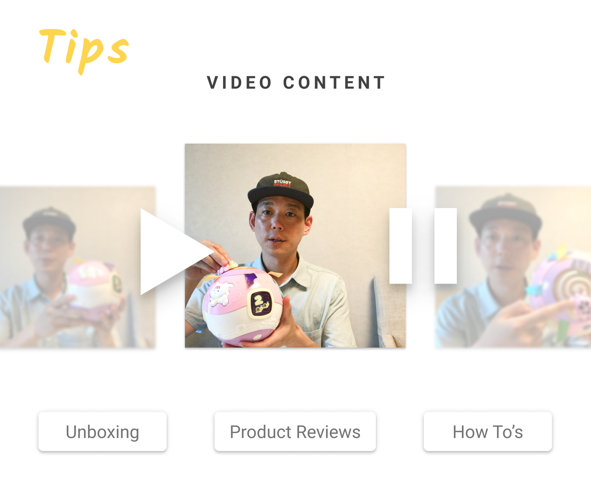 Video content is more engaging. Types of video content to upload are unboxing, how to’s, product reviews, or videos showing the product being used.