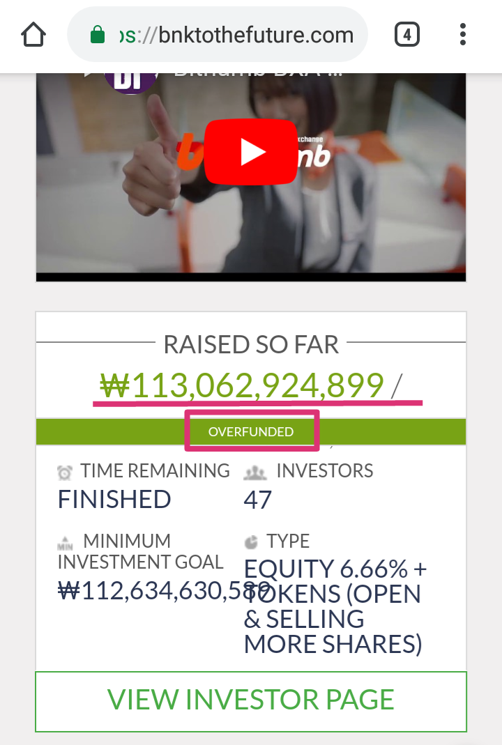 즉, BTHMB HOLDINGS 지분 6.66 %와 토큰을 47명의 투자자들에게 1,130억에 팔았습니다. 이는 1%당 약 170억에 해당하는 금액입니다. (이때 보너스로 주어지는 BXA토큰은 170억원 당 약 2억원 가치(개당 0.125usd 기준)로, 별로 의미 있는 양은 아니네요. )