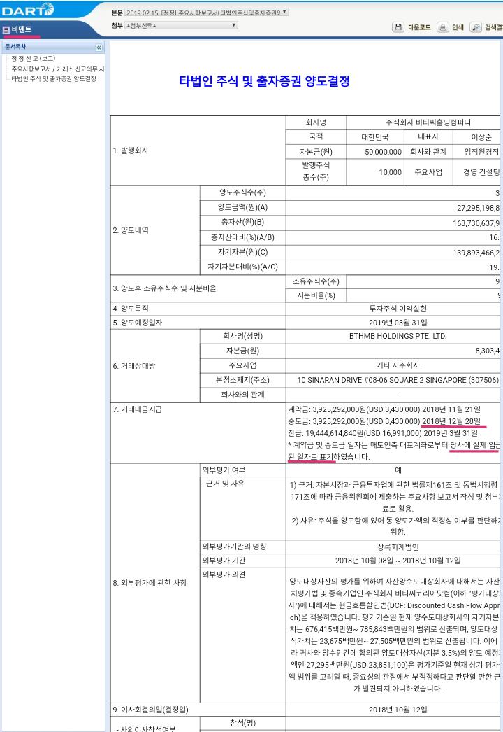 위 내용에서 중요한 점은 BTHMB HOLDINGS 전체 시총을 1조 7000억원으로 계산하여 판매하였고, 이 세일은 완판되었다는 점 입니다.