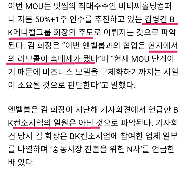 -빗썸이 최근에 UAE 지역 왕실과 자원 공동개발을 했고 UAE 정부와는 디지털 변환 프로젝트 등을 진행한 바 있는 N-Velop과 협약을 맺고 조인트벤쳐 설립 및 UAE 라이센스 발급받아 법정화폐 거래소까지 만든다.