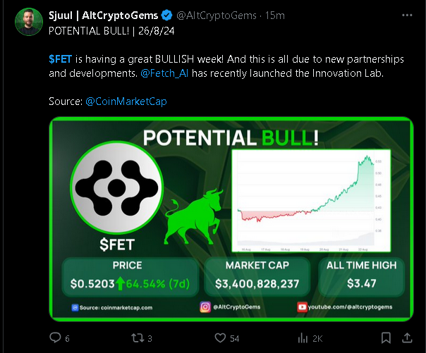 Sjuul post revealed that Fet price has been bullish this week due to the new partnerships and developments.