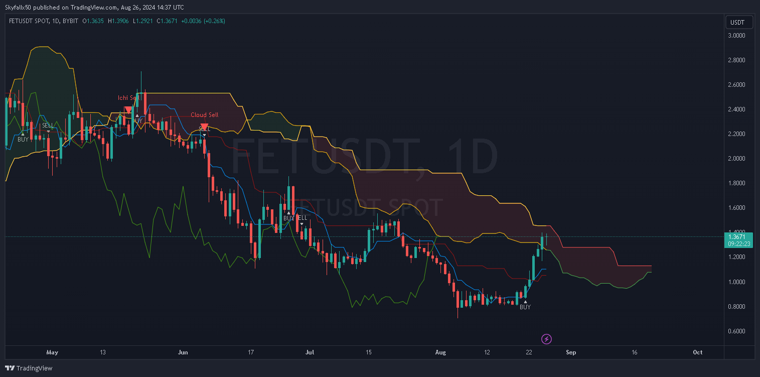 Fet price on the 1 day timeframe is not yet bullish but the conversion line is above the base line and that is a weak buy signal.