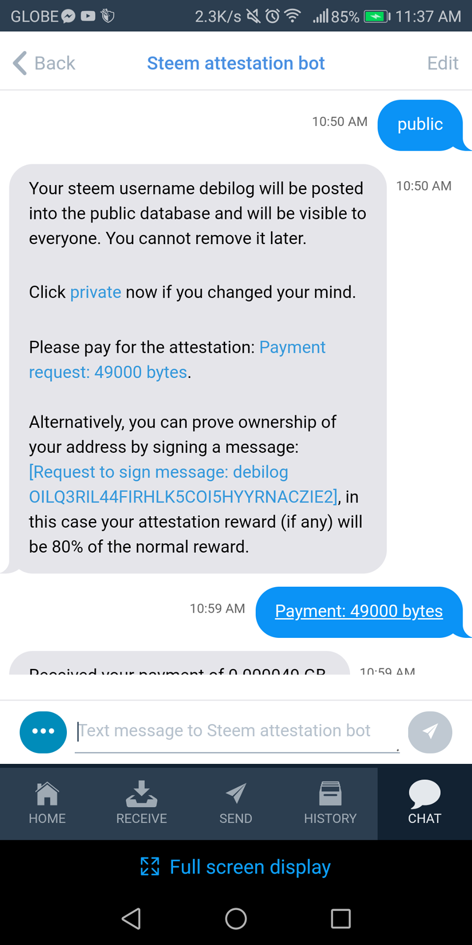 - You have to provide your Steemit username and verify it through a link that the bot will send to you via chat.