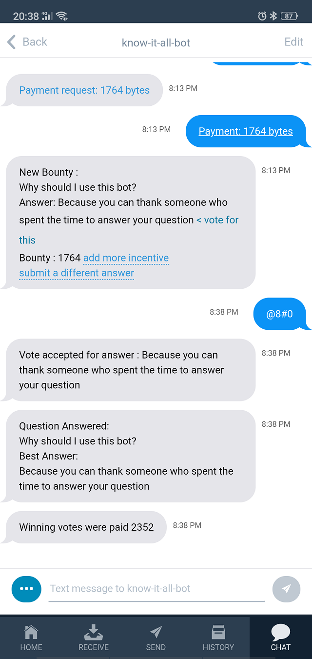 Install Byteball and connect with Know-it-all bot