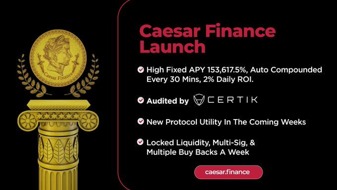 CAP gives $CAESAR programmed marking and intensifying elements, and the most noteworthy fixed APY in the market at 153,617.5%, a day to day return on initial capital investment (Profit from Speculation) of simply more than 2%.