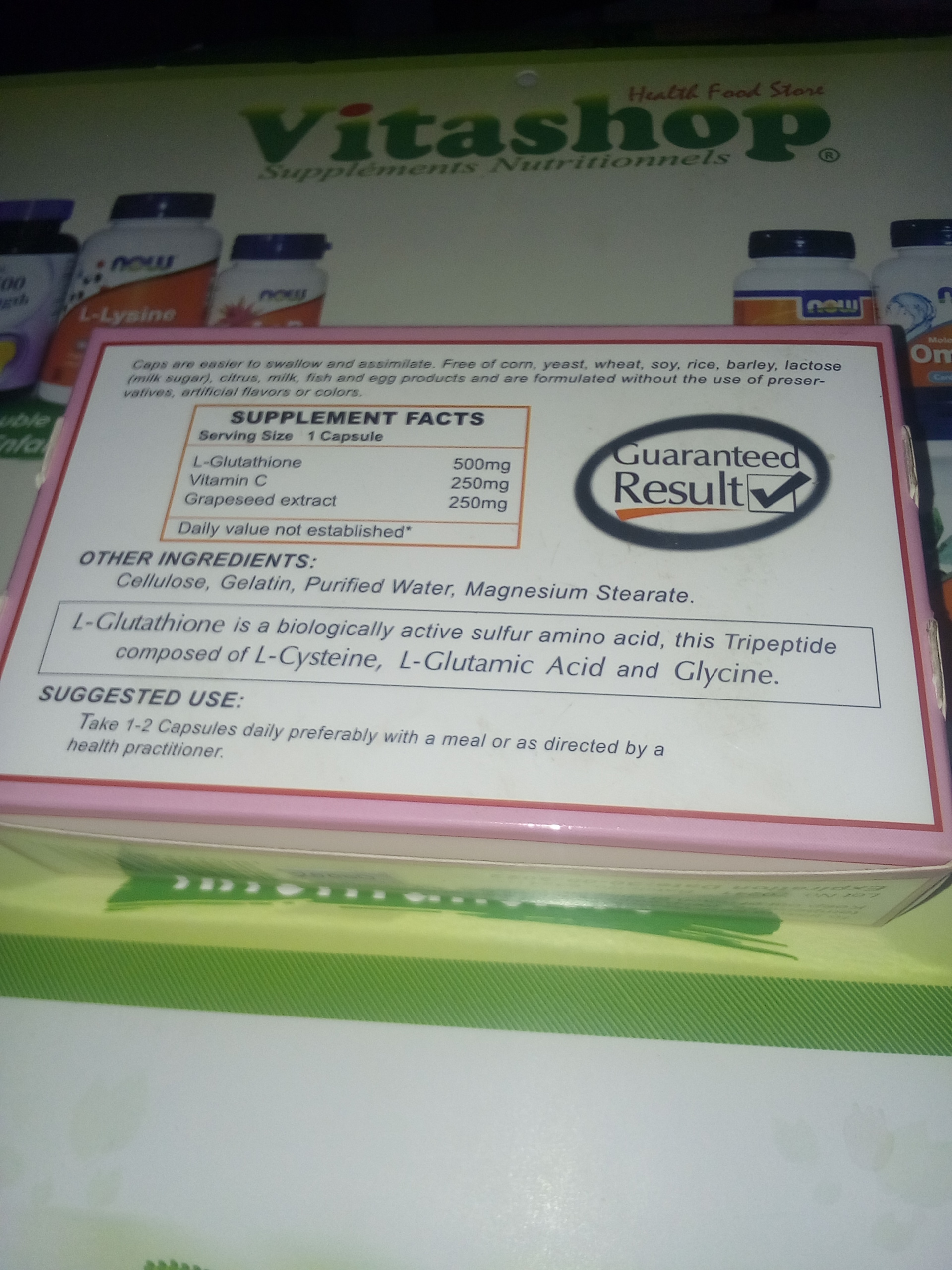 Caps are easier to swallow and assimilate.Compose of l-Glutathione, Grape seed extract and Vitamin C which are Antioxidants that fight against aging of the skin through attack of free radicals.