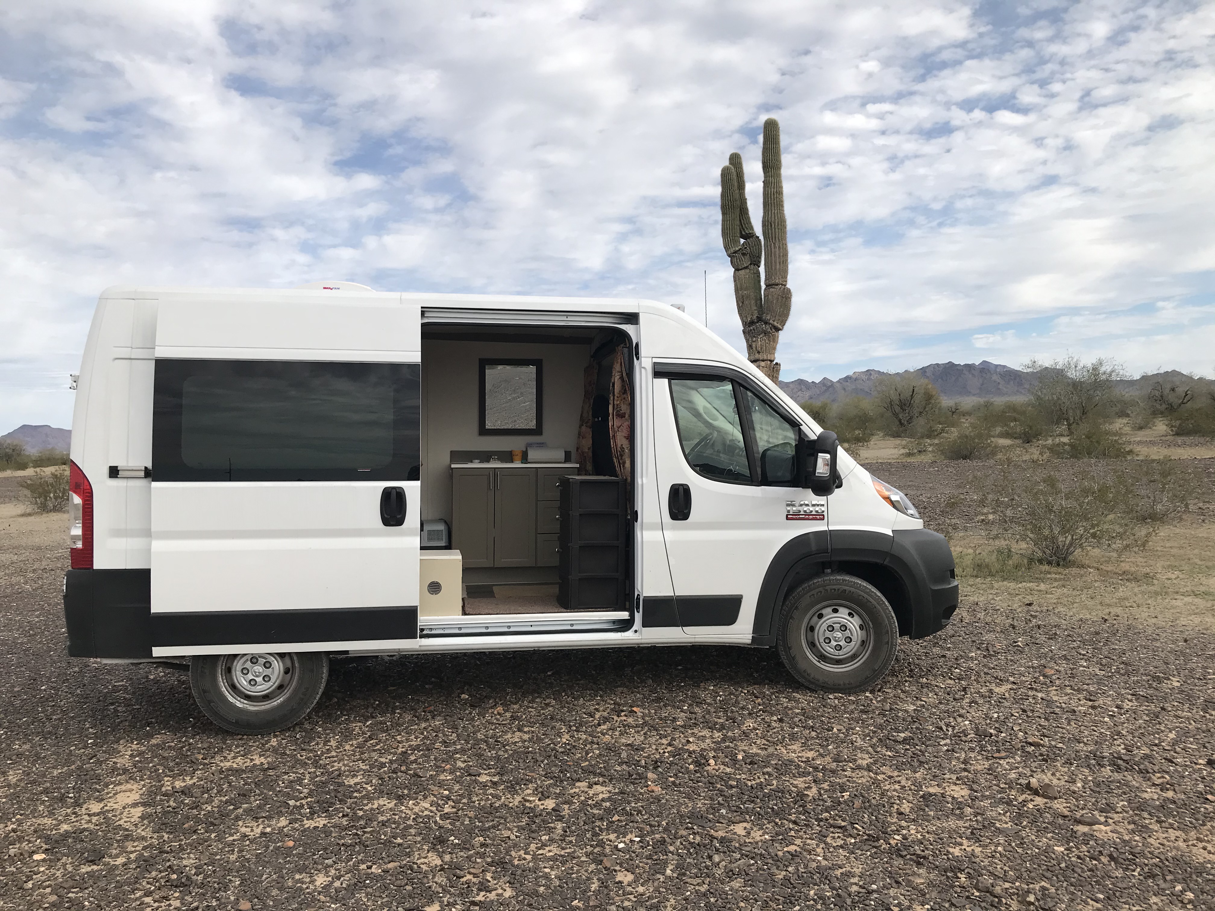 I had seen and talked with many other van dwellers by this time and it seemed the van of choice for converting to an RV was the RAM Promaster High Top. I sold the Promaster City and bought a RAM Promaster High Top. I had learned a lot as to what I wanted in a van and did the conversion myself. I now have a very comfortable van that I can stand erect in and move around quite freely. I have running water, a very comfortable bed, a refrigerator, roof fan and enough room for all I’ll ever need for anything I want to carry with me as I travel.
