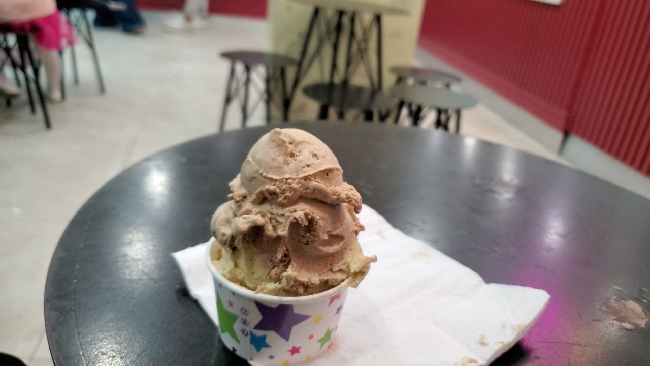 For my own order, I chose two scoops of ice cream served in a small cup, and I found the final presentation pleasant because the portion looked satisfying and the ice cream itself had a creamy and refreshing texture that made it enjoyable from the first spoon until the last one, which is of course one of the most important things when evaluating an ice cream shop, since appearance alone is never enough if the product does not taste good.