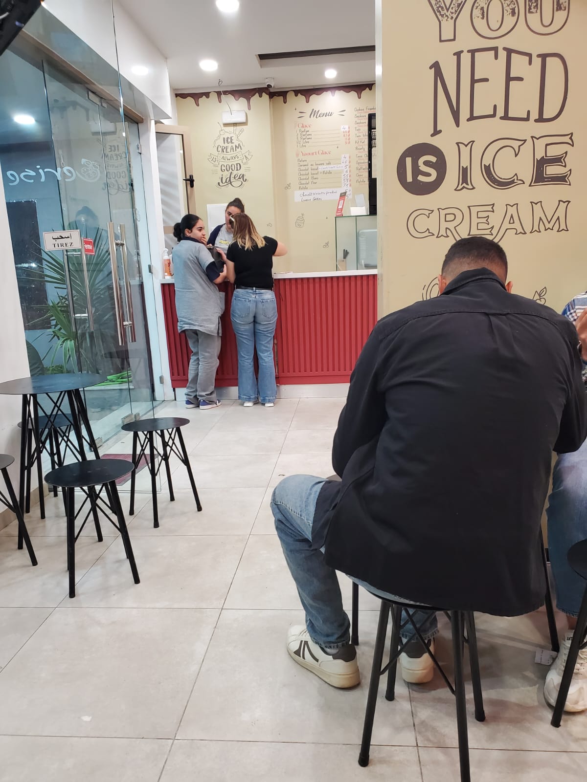 Once I entered the shop, I found the service area clean, organized, and active, because there were customers placing orders while the staff worked behind the counter in a relatively efficient way, and this gave me a positive impression since cleanliness and order are very important in a place that serves desserts and cold products.