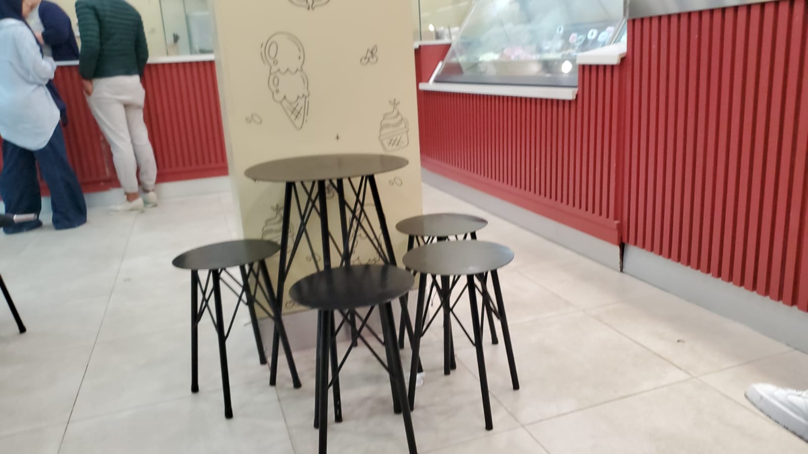 If I had to rate this ice cream shop, I would give it 4.5 stars out of 5, because I truly appreciated the quality of the ice cream, the clean environment, the nice visual identity, the good flavor selection, and the fair pricing, but I cannot give it the full 5 stars because I noticed one detail that could be improved, which is the comfort of the seating area, as the stools inside were not very comfortable for customers who might want to sit and enjoy their dessert for a longer time.