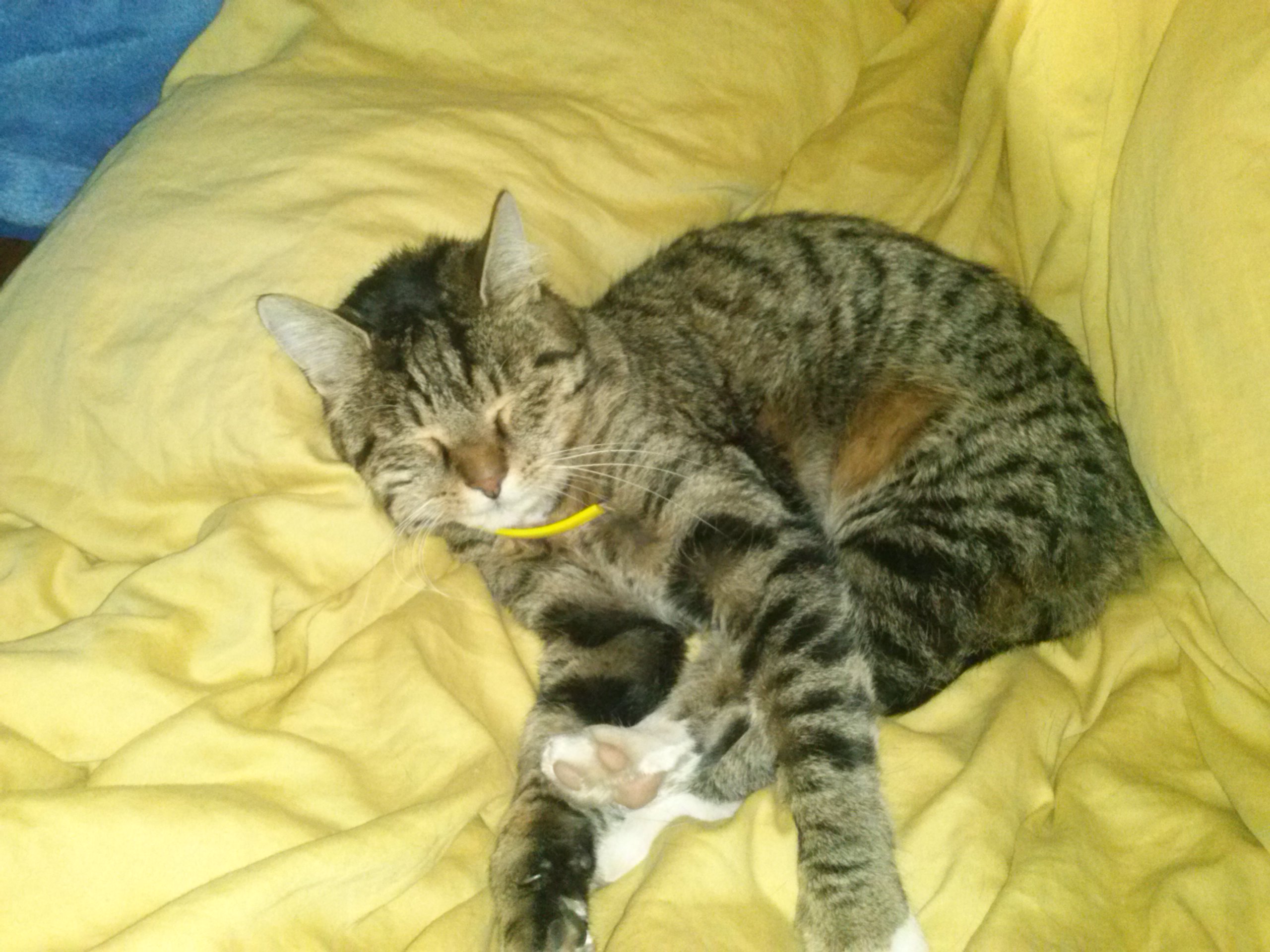 Sleeping catdomus55 (46)in #cat • 8 years ago Here is my cat sleeping in bed :) Bonus photo Have a nice day! #cats #photography