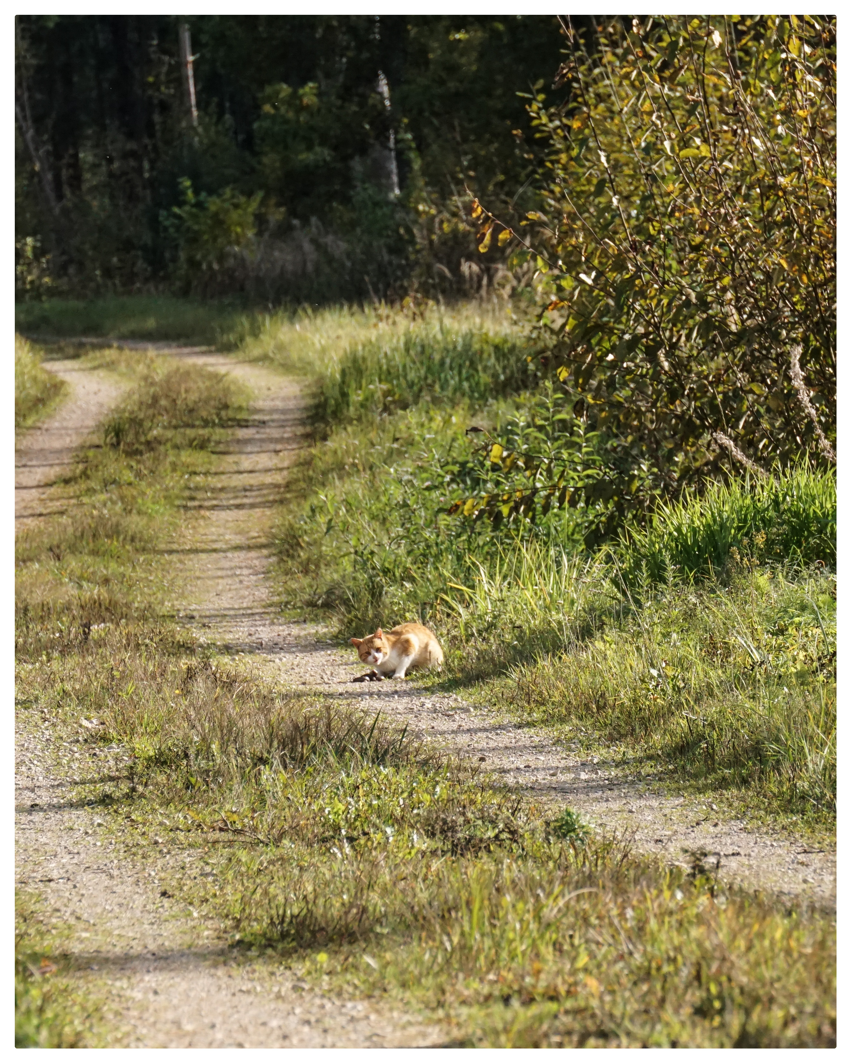 The cat looks at you scared, well you say he runs away, the cat was very determined to hunt this animal or maybe he was too hungry