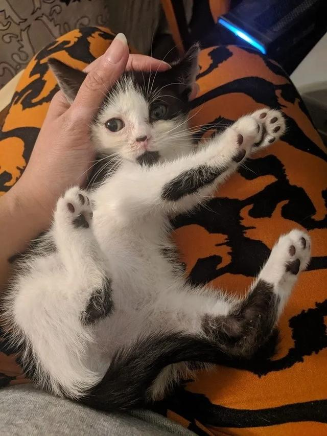 One winter morning, a thin light snow had just fallen on the ground. A stray kitten is at the door of the shop, screaming "Meow Meow Meow". When I saw it, its frozen body kept shaking, its black body, only four feet were pure white. Because the hair is wet, it looks messy and thin, just like a homeless wandering child, which makes people feel pity at first sight.