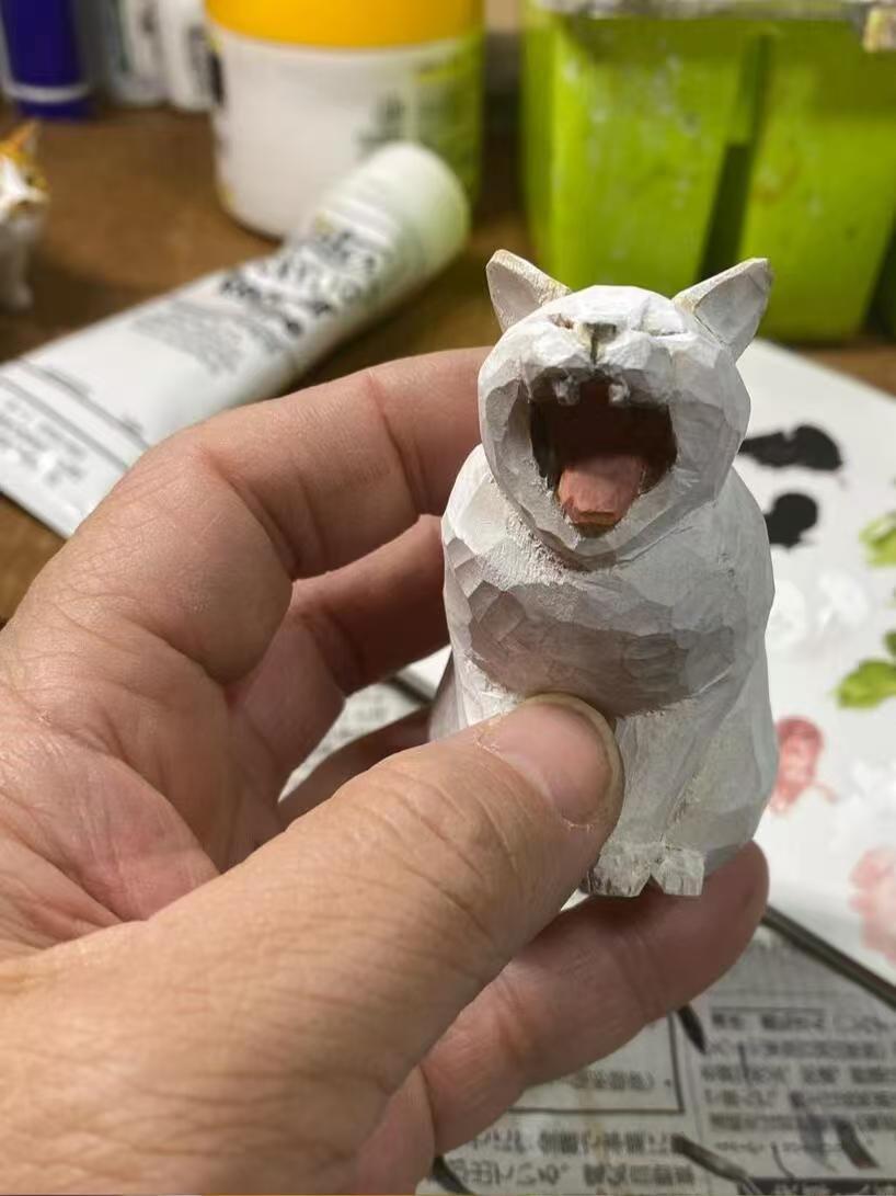 打哈欠真的会传染!被艺术家yamaneko的木雕猫猫传染了