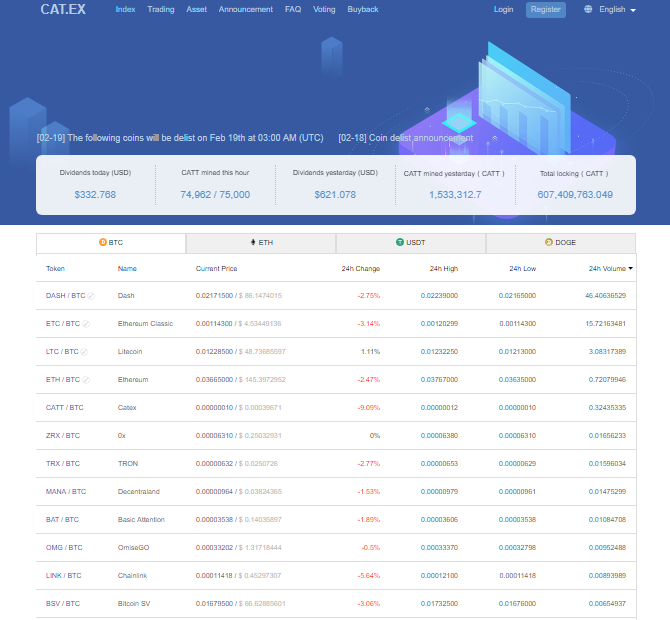 On February 15th, 2019, an amazing news was shared @catexofficial the twitter handle of cat exchange, they are now listed with #coingecko. With this important news, users can easily get the latest price of catt, listed pairs, trading volume, trading fees, exchanges it is currently listed on, and get liquidity status with just a click. Catt token is also currently listed on three exchanges with more on the way.