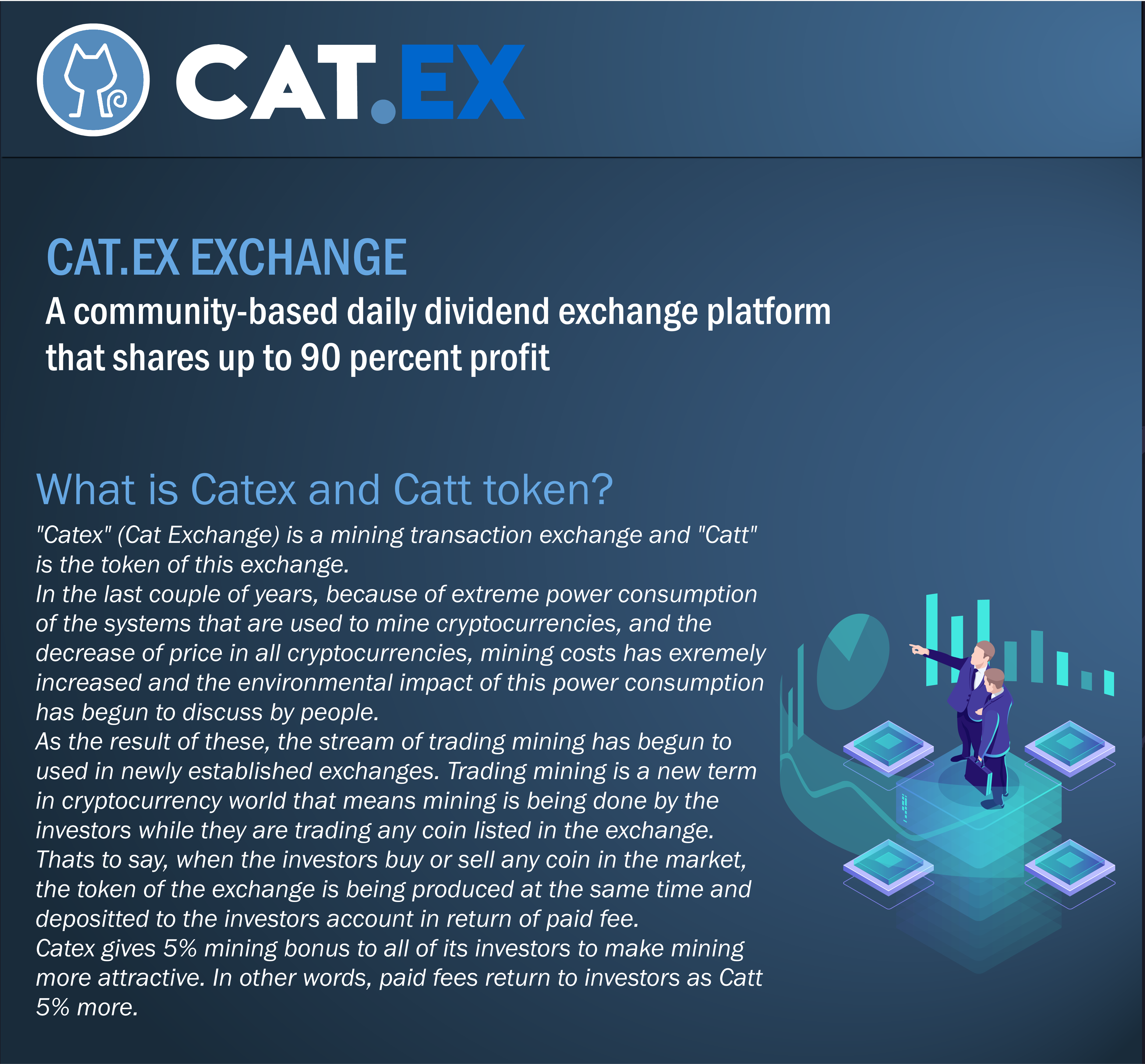 #catex is the acronym of #catexchange which was founded in the third quarter of the year 2018 (August), catex is the first exchange of its kind, that statement might sound like an exaggeration but it’s not I’ll explain every bit of what I mean by that. Traditional trading exchanges are not concerned with the affairs or interest of their users. All they’re concerned with is how to feed on assets of their customers by demanding extortionate services charges from them.